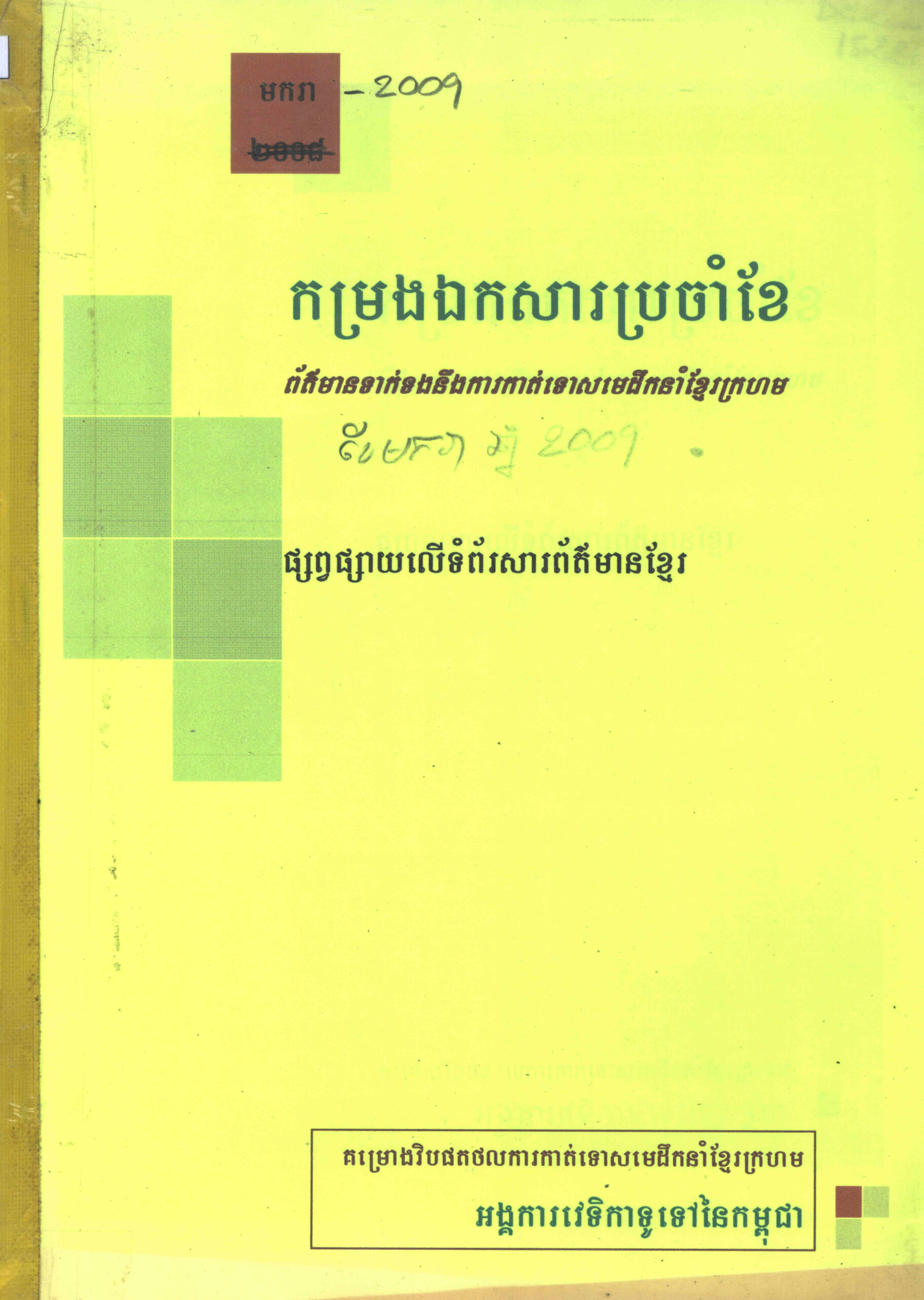 កម្រងឯកសារប្រចាំខែៈ ព័ត៌មានទាក់ទងនិងការកាត់ទោសមេដឹកនាំខ្មែរក្រហមផ្សព្វផ្សាយលើទំព័រសារព័ត៌មាន ខែមករាឆ្នាំ២០០៩ (News clips)
