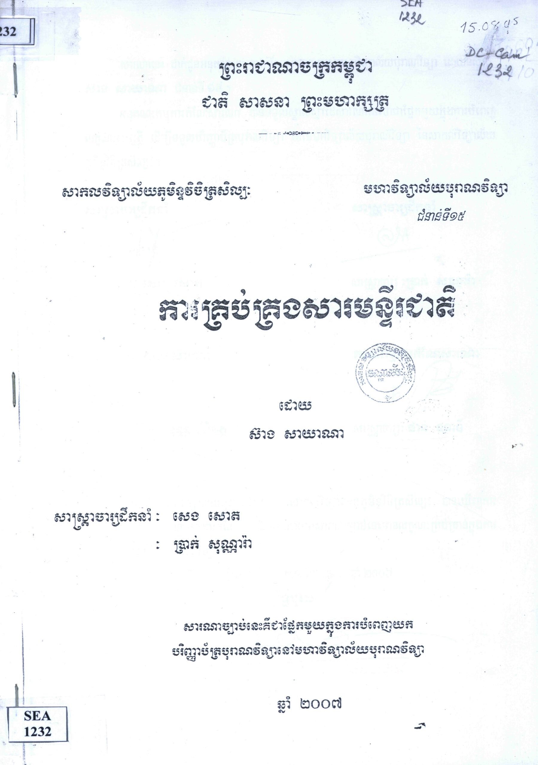 ការគ្រប់គ្រងសារមន្ទីរជាតិ (សារណាបញ្ចប់ថ្នាក់បរិញ្ញាប័ត្របុរាណវិទ្យា)