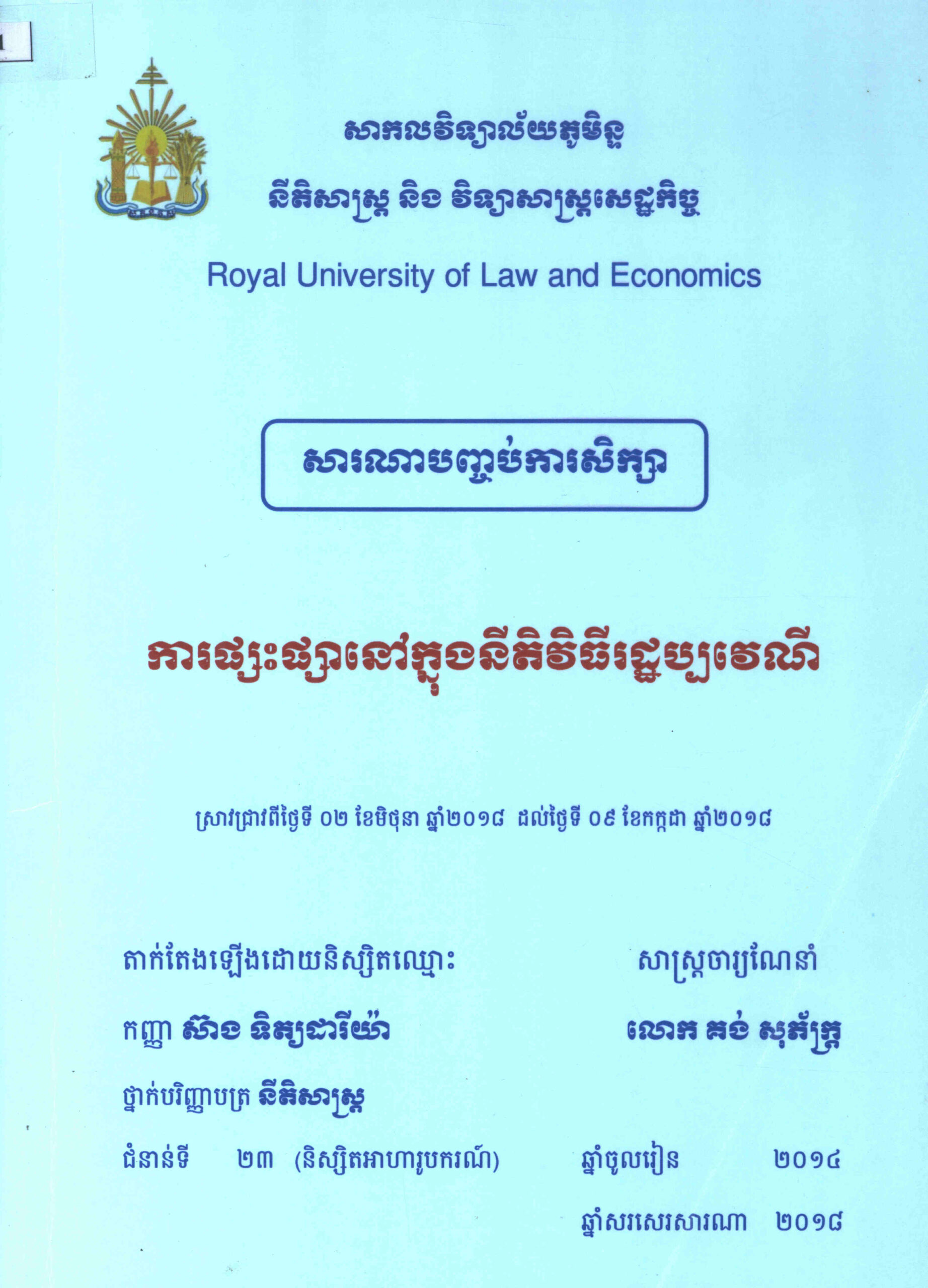 ការផ្សះផ្សានៅក្នុងនីតិវិធីរដ្ឋប្បវេណីៈ សារណាបញ្ចប់ការសិក្សាថ្នាក់បរិញ្ញាបត្រនីតិសាស្រ្ត
