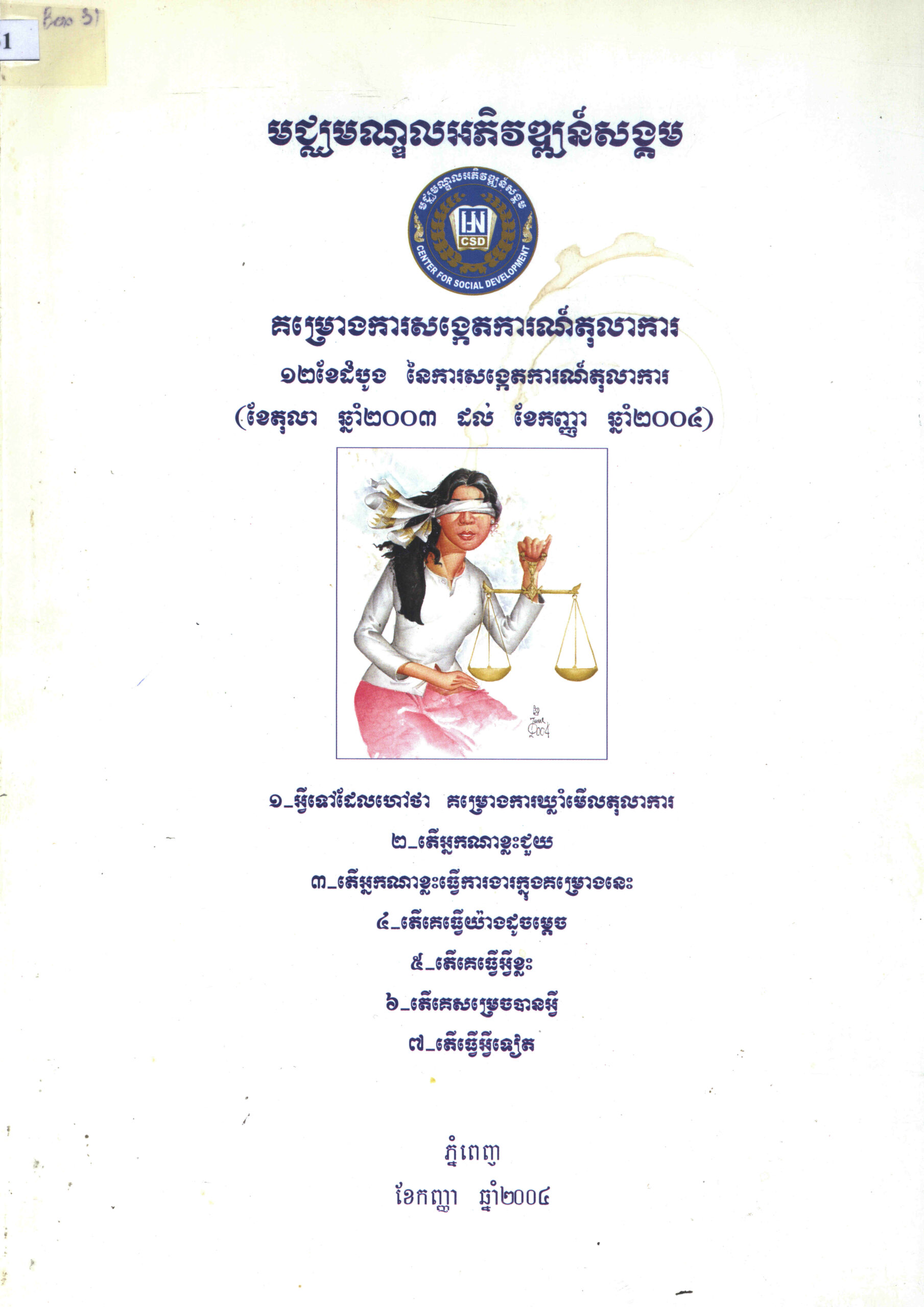 គម្រោងការសង្កេតការណ៍តុលាការ ១២ខែដំបូង នៃការសង្កេតការណ៍តុលាការ (ខែតុលា ២០០៣–ខែកញ្ញា ២០០៤)