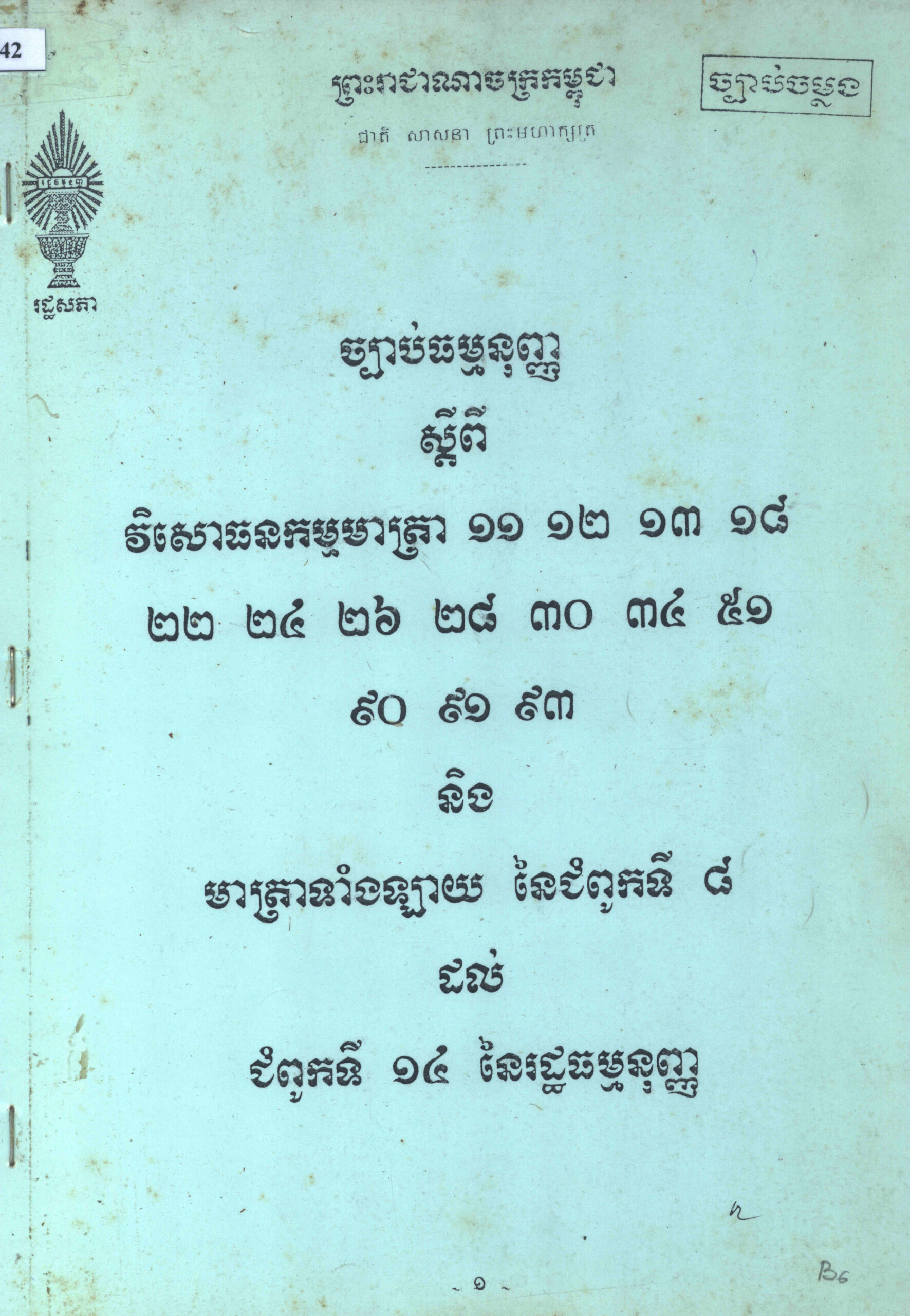 ច្បាប់ធម្មនុញ្ញ ស្តីពីវិសោធនកម្មមាត្រា ១១ ១២ ១៣ ១៨ ២២ ២៤ ២៦ ២៨ ៣០ ៣៤ ៥១ ៩០ ៩១ ៩៣ និងមាត្រាទាំងឡាយនៃជំពូកទី៨ ដល់ជំពូកទី១៤ នៃរដ្ឋធម្មនុញ្ញ
