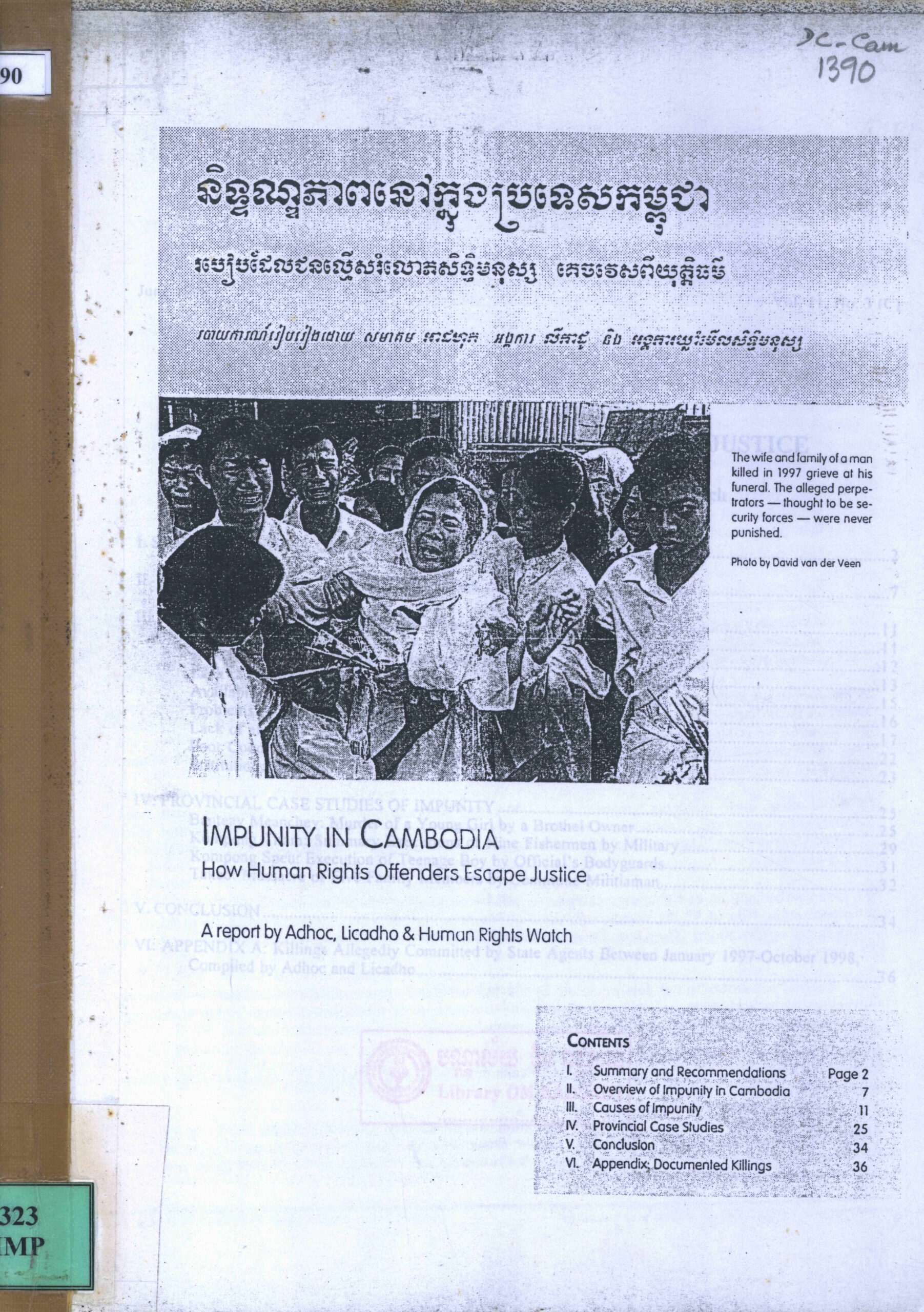 និទ្ទណ្ឌភាពនៅក្នុងប្រទេសកម្ពុជាៈ របៀបដែលជនល្មើសរំលោភសិទ្ធិមនុស្ស គេចវេសពីយុត្តិធម៌ (Impunity in Cambodia: How Human Rights Offenders Escape Justice).