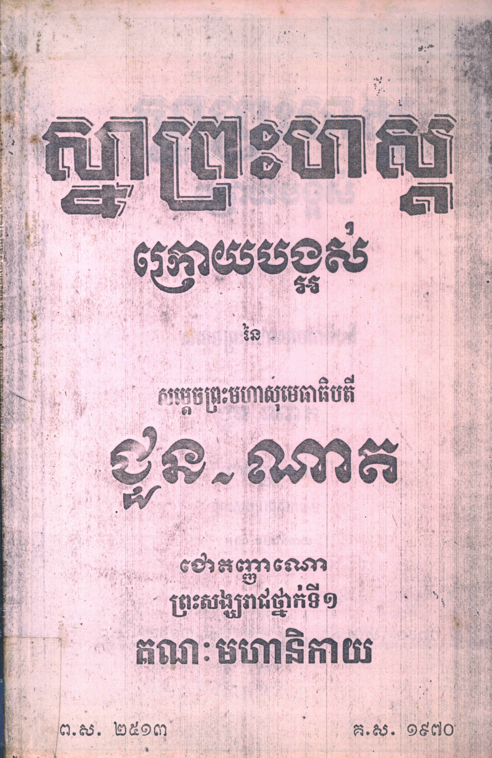 ស្នាព្រះហស្តក្រោយបង្អស់ នៃសម្តេចមហាសុមេធាធិបតី ជួន​ ណាត ជោតញ្ញាណោ ព្រះសង្ឃរាជថ្នាក់ទី១ គណៈមហានិកាយ