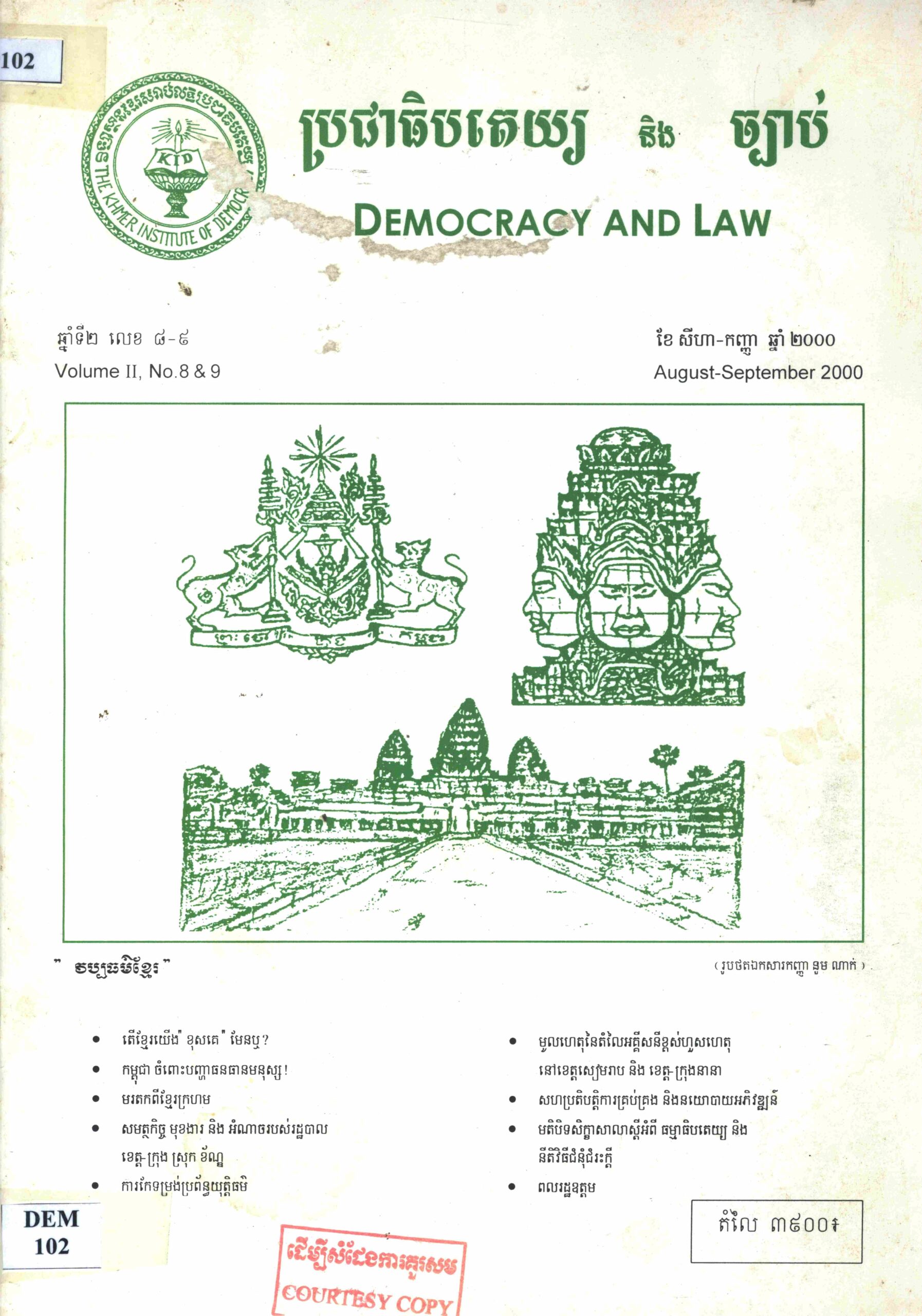 ប្រជាធិបតេយ្យ និងច្បាប់ ឆ្នាំទី២ លេខ៨-៩ Vol. II, No 8-9.- ភ្នំពេញ: The Khmer Institute of Democracy, 2000. 38p.: