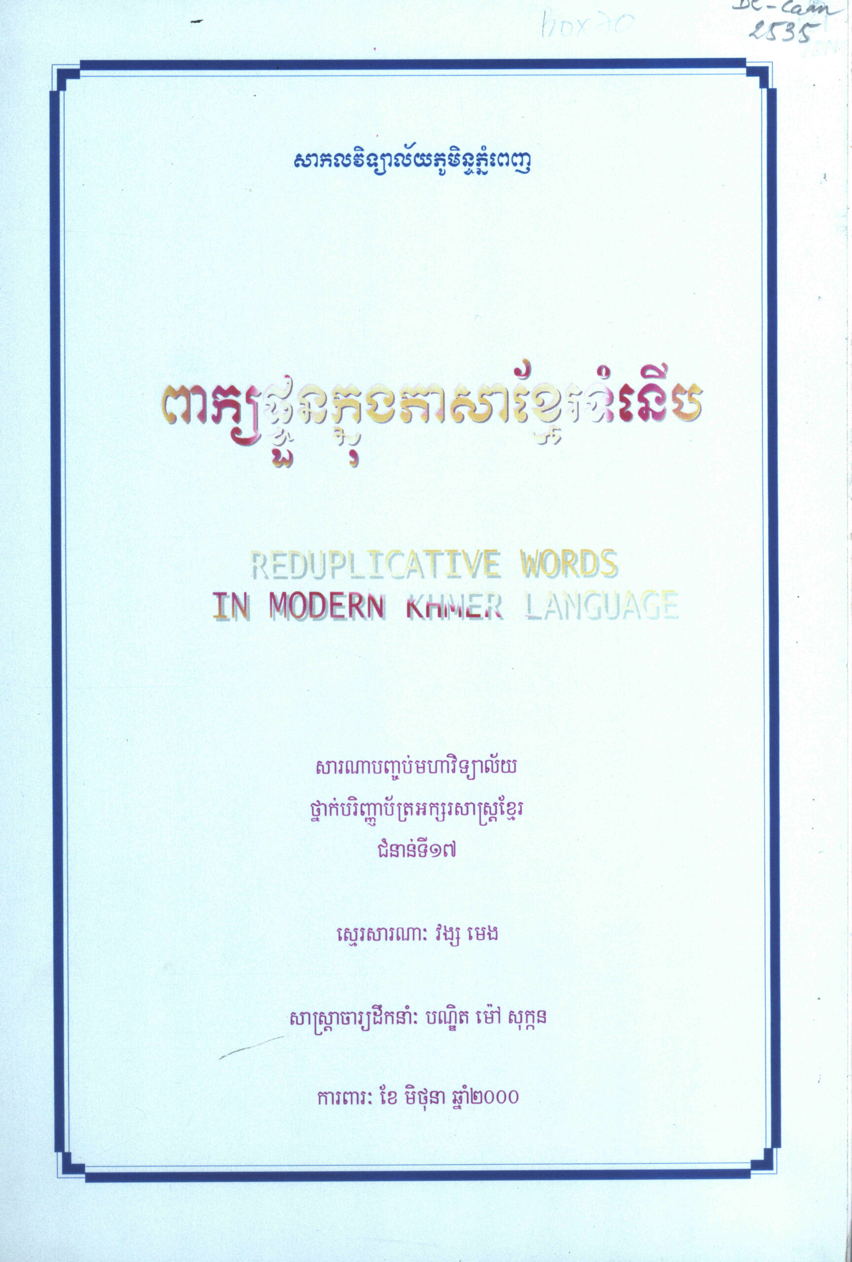 ពាក្យផ្ទុយក្នុងភាសាខ្មែរទំនើបៈ សារណាបញ្ចប់មហាវិទ្យាល័យថ្នាក់បរិញ្ញាប័ត្រអក្សរសាស្ត្រខ្មែរជំនាន់ទី១៧