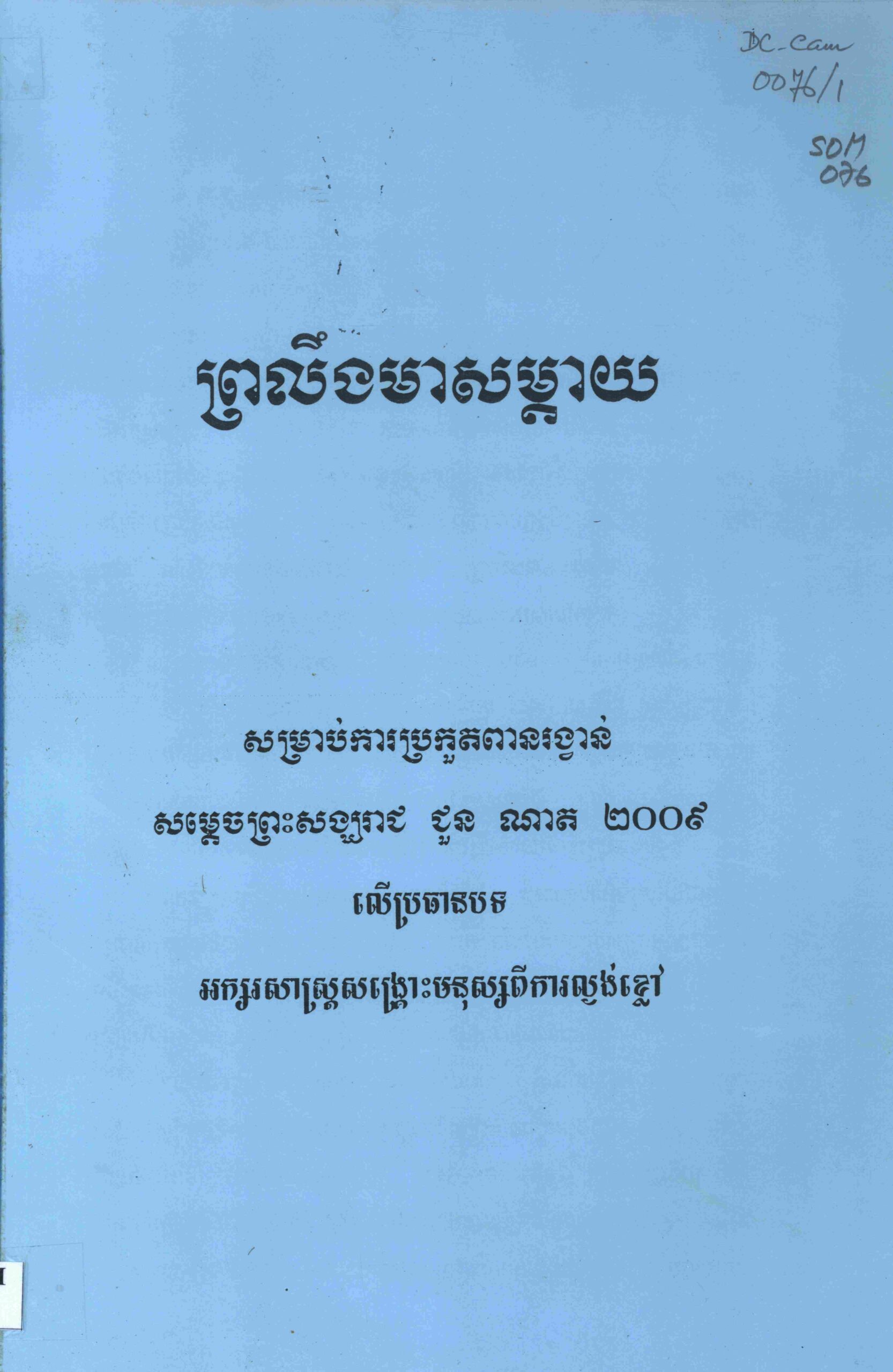 ព្រលឹងមាសម្តាយៈ សម្រាប់ការប្រកួតពានរង្វាន់សម្តេចព្រះសង្ឃរាជ ជួន ណាត ២០០៩ លើប្រធានបទ អក្សរសាស្រ្តសង្គ្រោះមនុស្សពីការល្ងង់ខ្លៅ