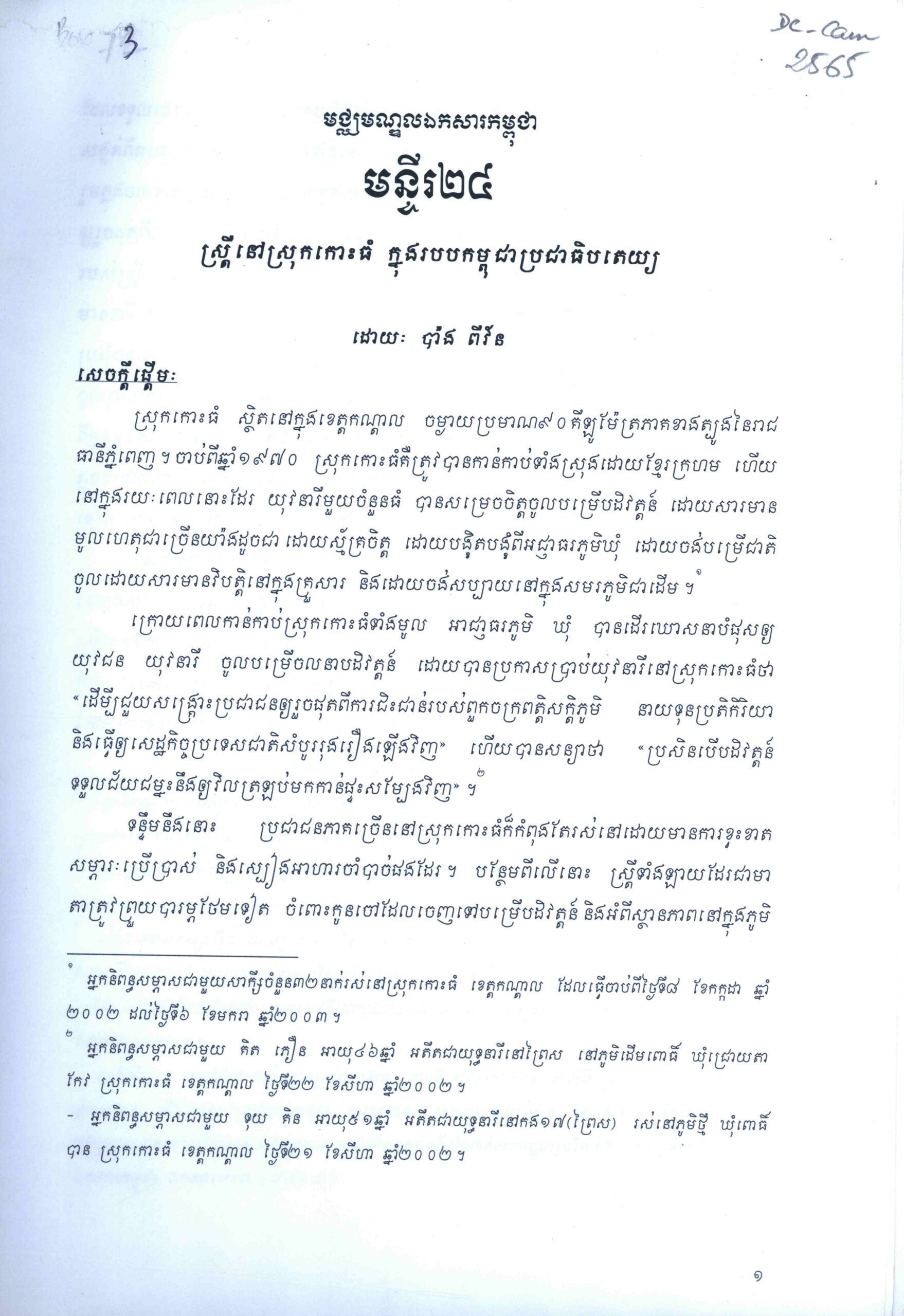 មន្ទីរ២៤ ស្រ្តីនៅស្រុកកោះធំ ក្នុងរបបកម្ពុជាប្រជាធិបតេយ្យ