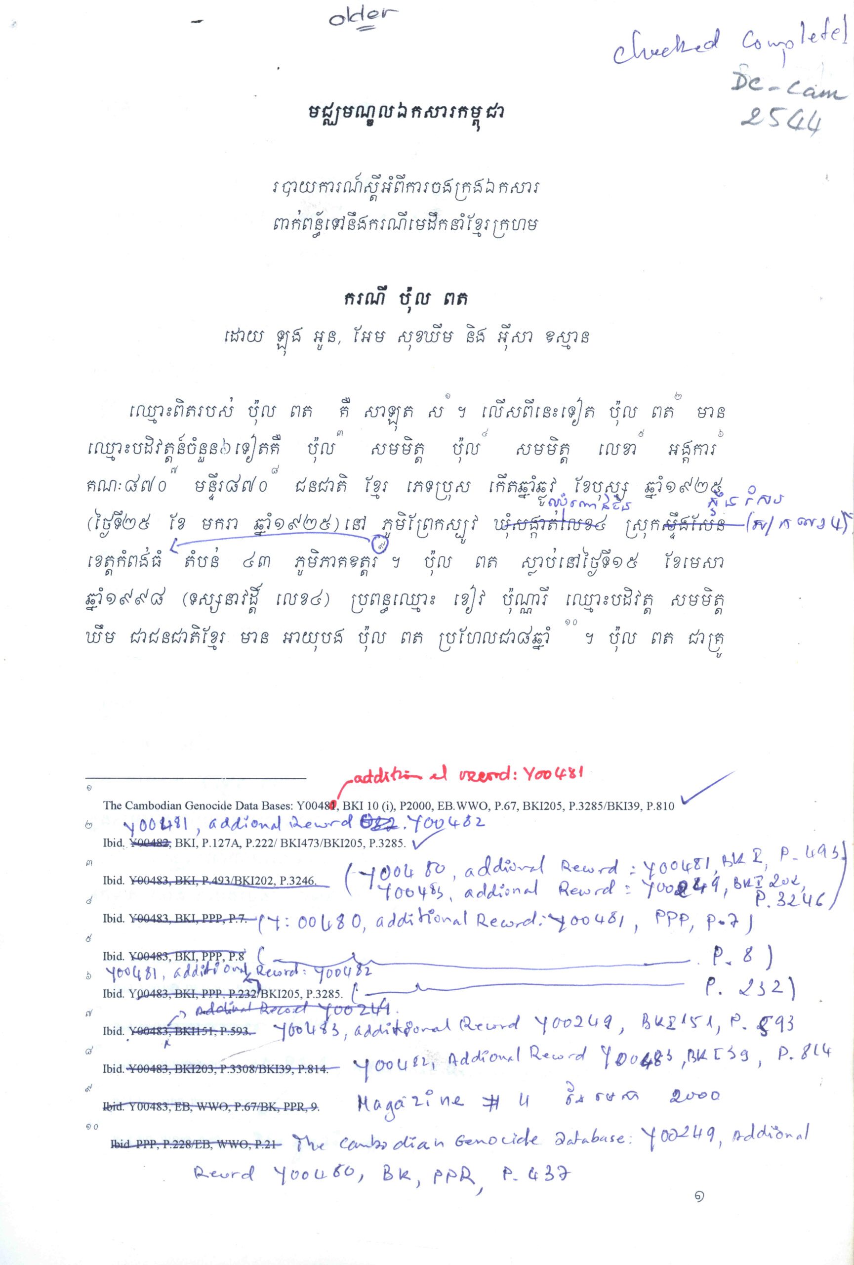 របាយការណ៍ស្តីអំពីការចងក្រងឯកសារពាក់ព័ន្ធទៅនឹងករណីមេដឹកនាំខ្មែរក្រហម