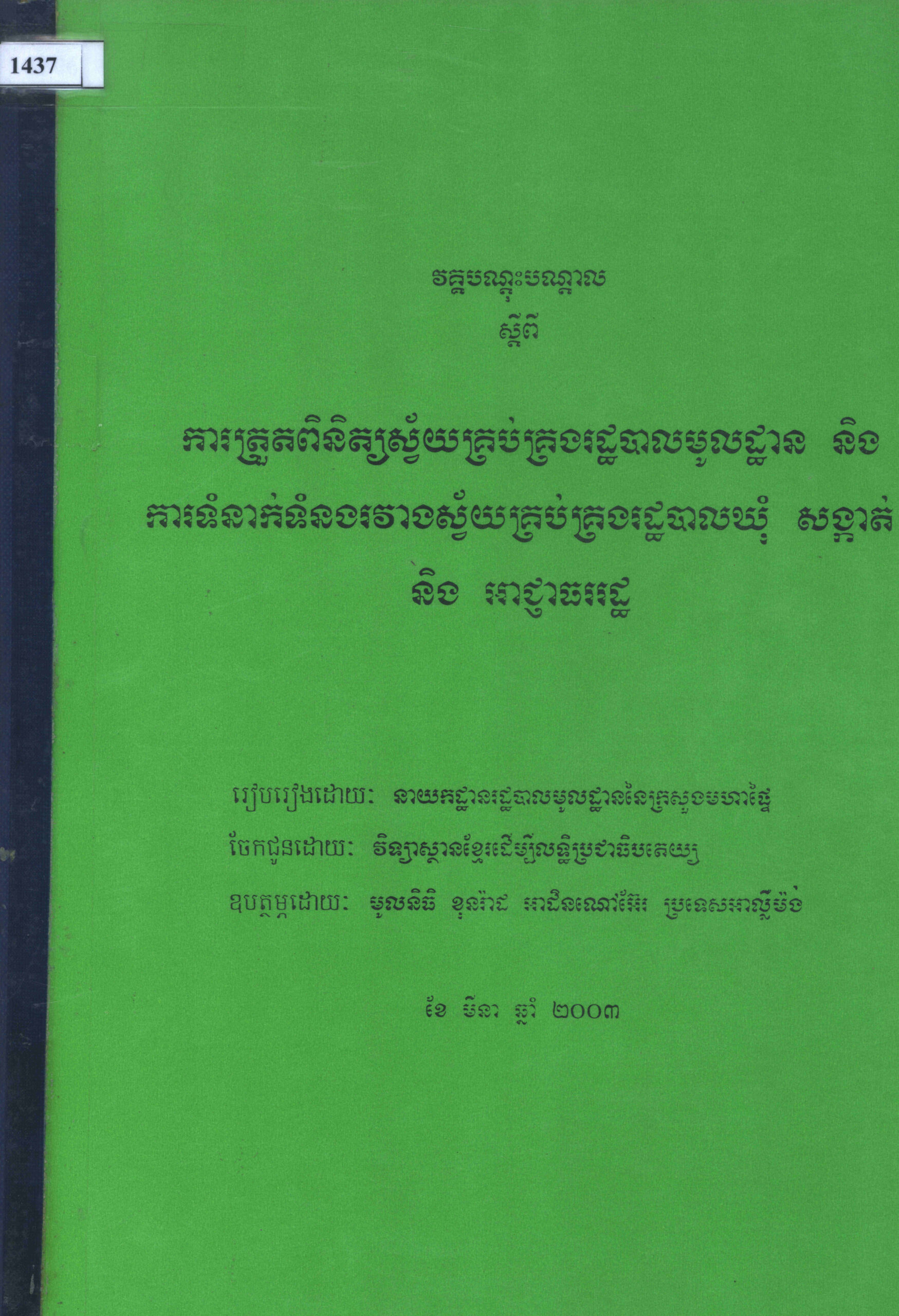 វគ្គបណ្តុះបណ្តាលស្តីពី ការត្រួតពិនិត្យស័្វយគ្រប់គ្រងរដ្ឋបាលមូលដ្ឋាន និងការទំនាក់ទំនងរវាងស្វ័យគ្រប់គ្រងរដ្ឋបាលឃុំ សង្កាត់ និងអាជ្ញាធររដ្ឋ