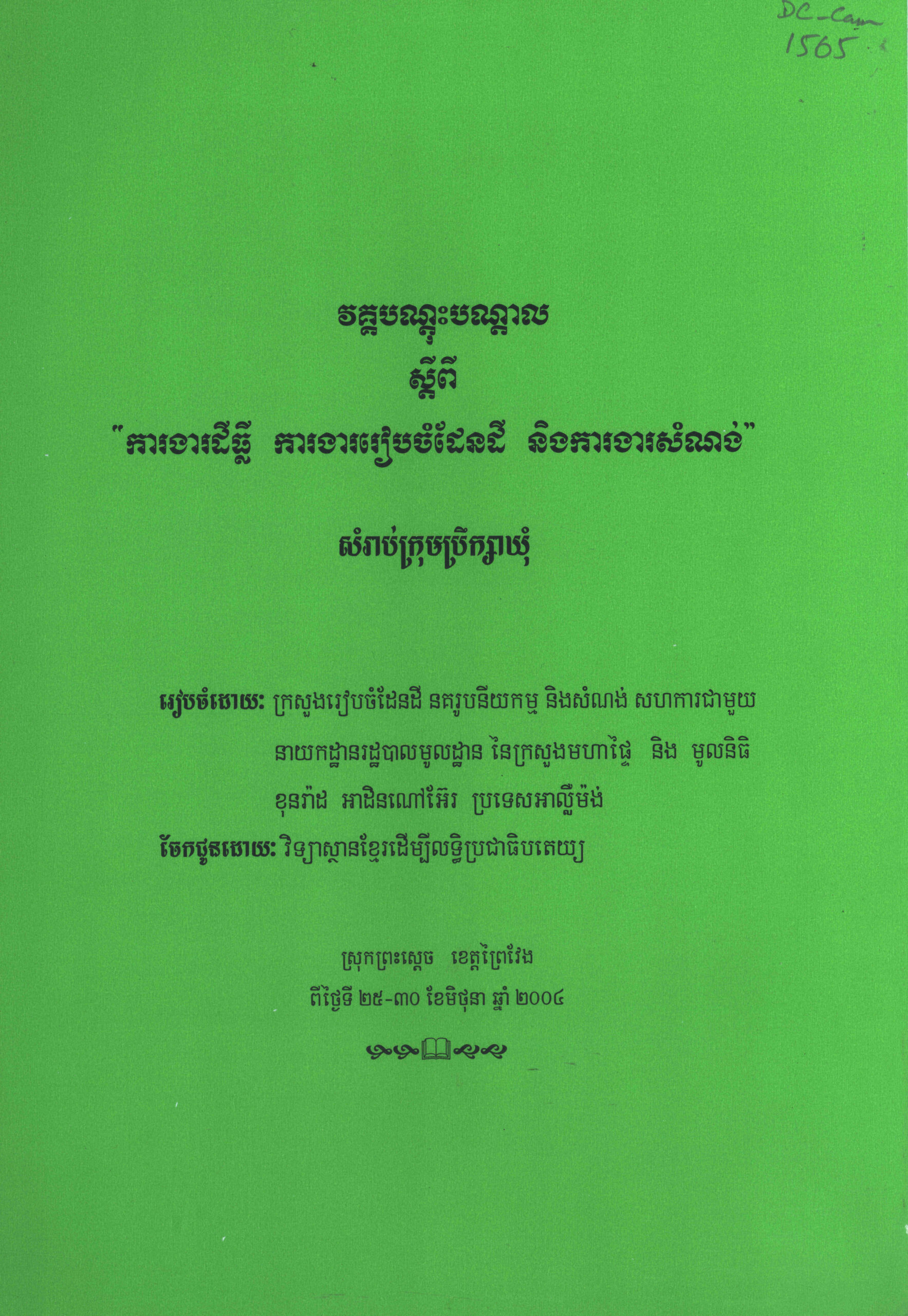 វគ្គបណ្តុះបណ្តាលស្តីពី “ការងារដីធ្លី ការងាររៀបចំដែនដី និងការងារសំណង់” សម្រាប់ក្រុមប្រឹក្សាឃុំ