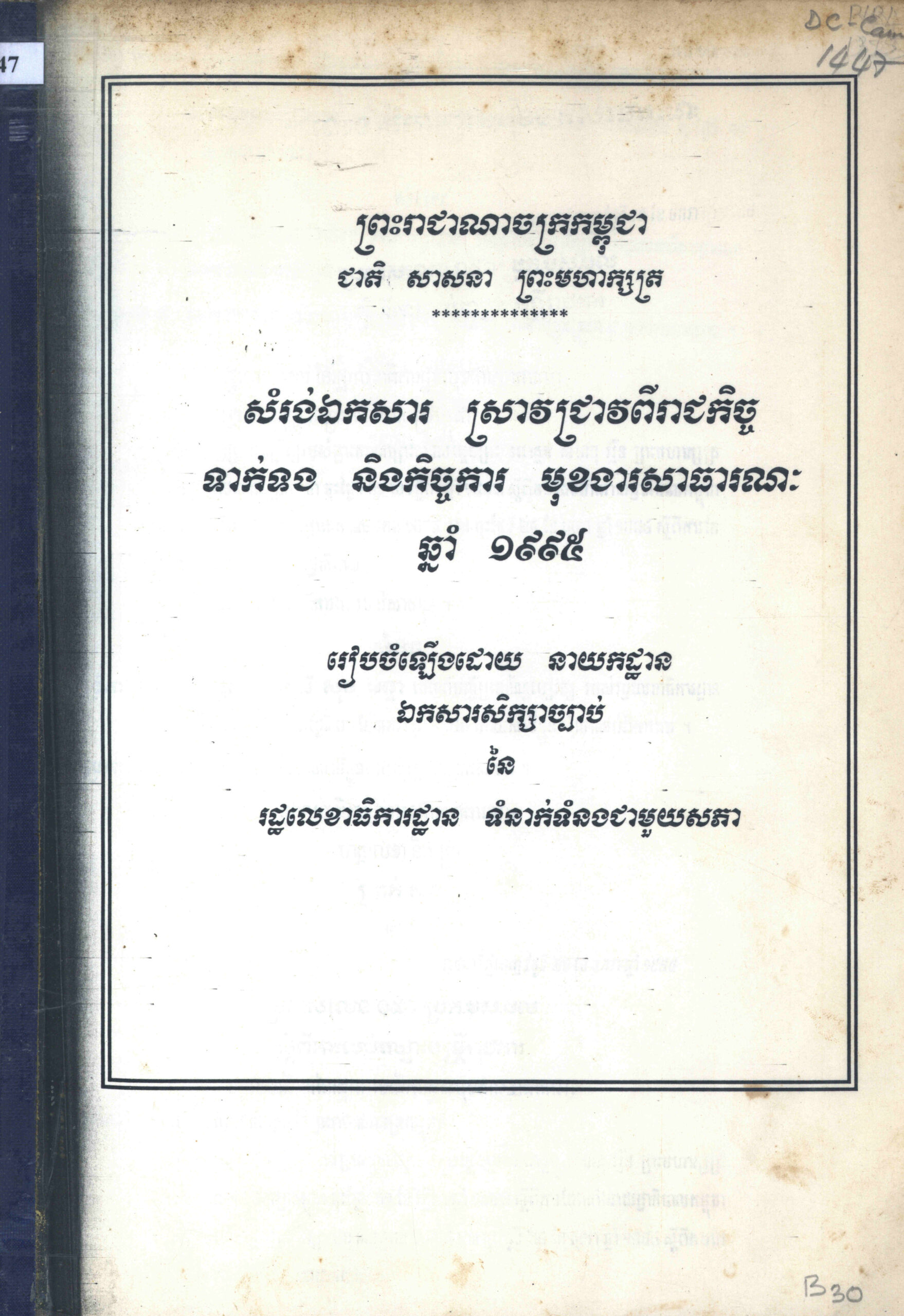 សម្រង់ឯកសារ ស្រាវជ្រាវពីរាជកិច្ច ទាក់ទងនិងកិច្ចការមុខងារសាធារណៈ ឆ្នាំ១៩៩៥