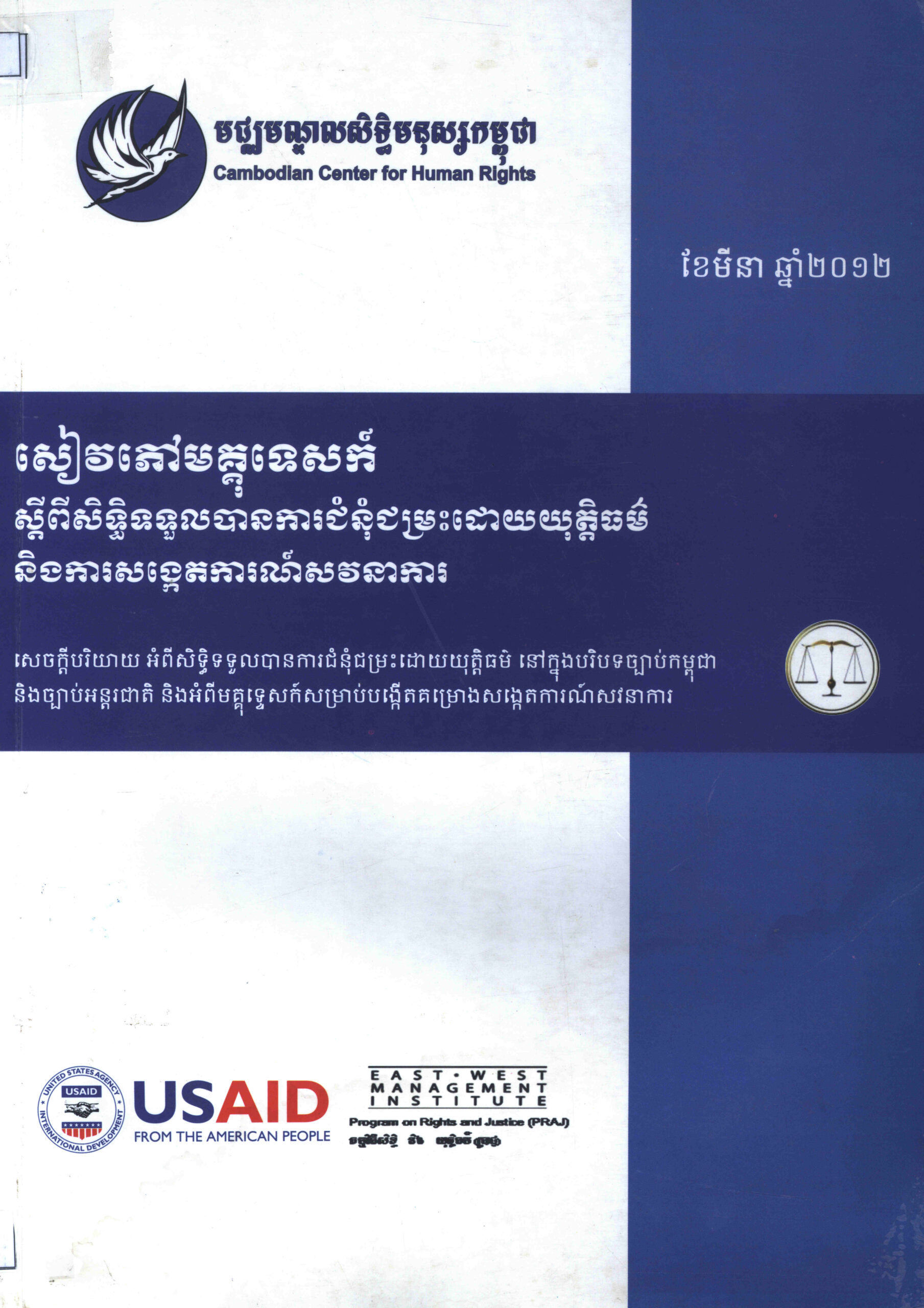 សៀវភៅមគ្គុទេសក៍ស្តីពីសិទ្ធិទទួលបានការជំនុំជម្រះដោយយុត្តិធម៌ និងការសង្កេតការណ៍សវនាការ (Fair Trial Rights and Trial Monitoring Handbook).