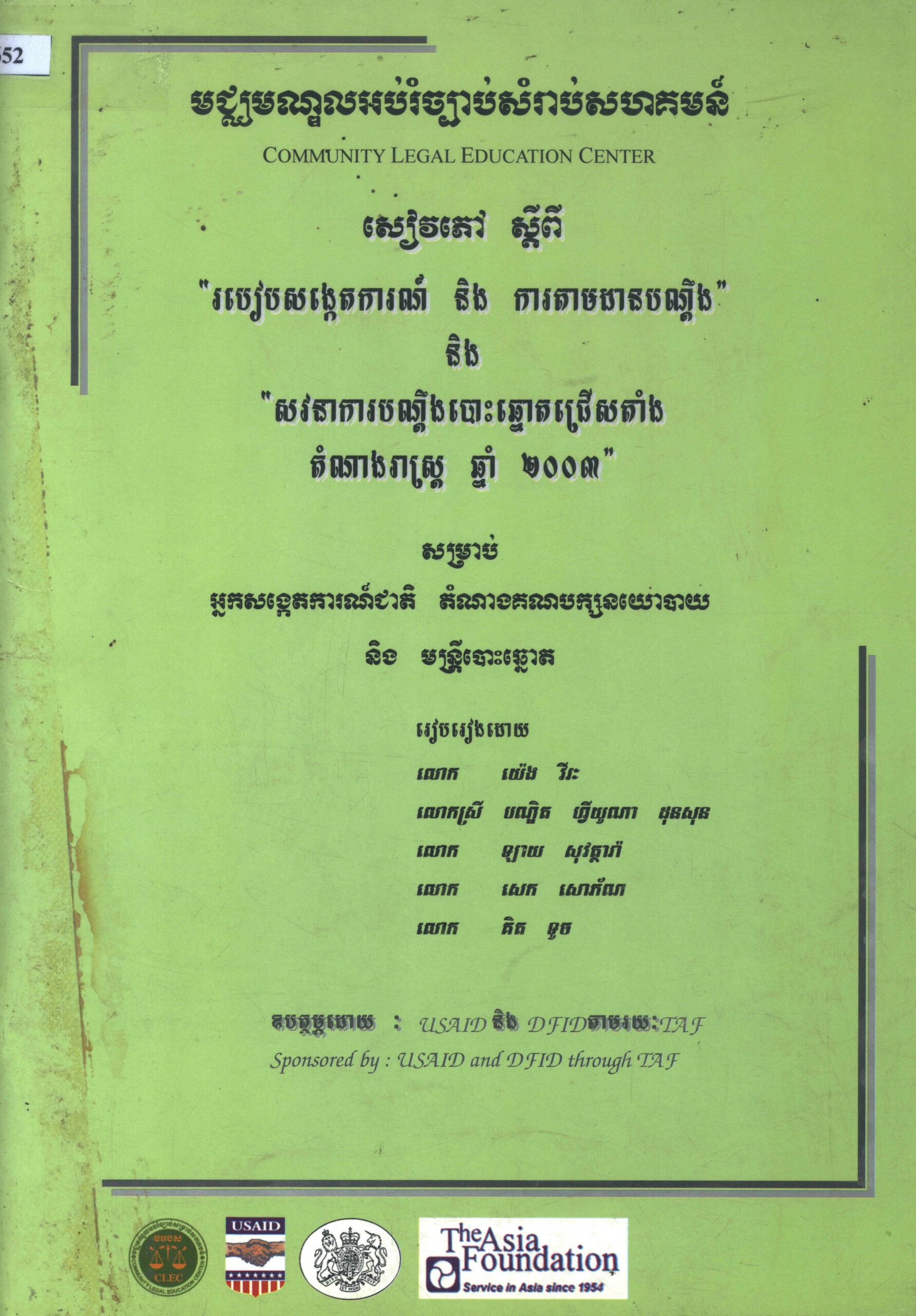 សៀវភៅស្តីពី “របៀបសង្កេតការណ៍ និងការតាមដានបណ្តឹង” និង “សវនាការបណ្តឹងបោះឆ្នោតជ្រើសតាំងតំណាងរាស្ត្រ ឆ្នាំ២០០៣ សម្រាប់អ្នកសង្កេតការណ៍ជាតិ តំណាងគណបក្សនយោបាយ និងមន្រ្តីបោះឆ្នោត