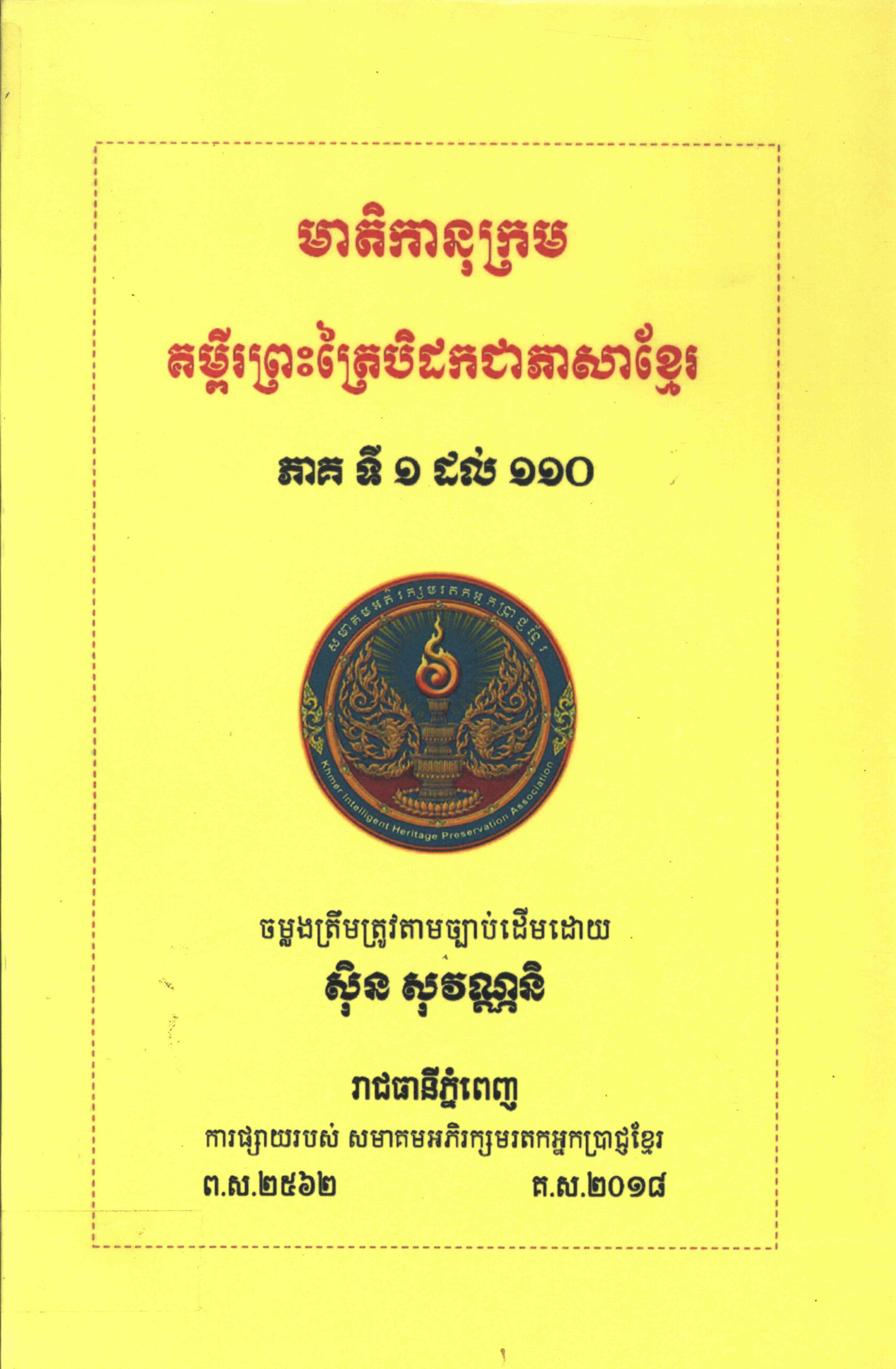 សៀវភៅឯកសារ មាតិកានុក្រមព្រះវិន័យបិដកៈ ព្រះត្រៃបិដកបាឡី សេចក្តីប្រែជាភាសាខ្មែរវិន័យបិដក មហាវិភង្គ បឋមភាគ១