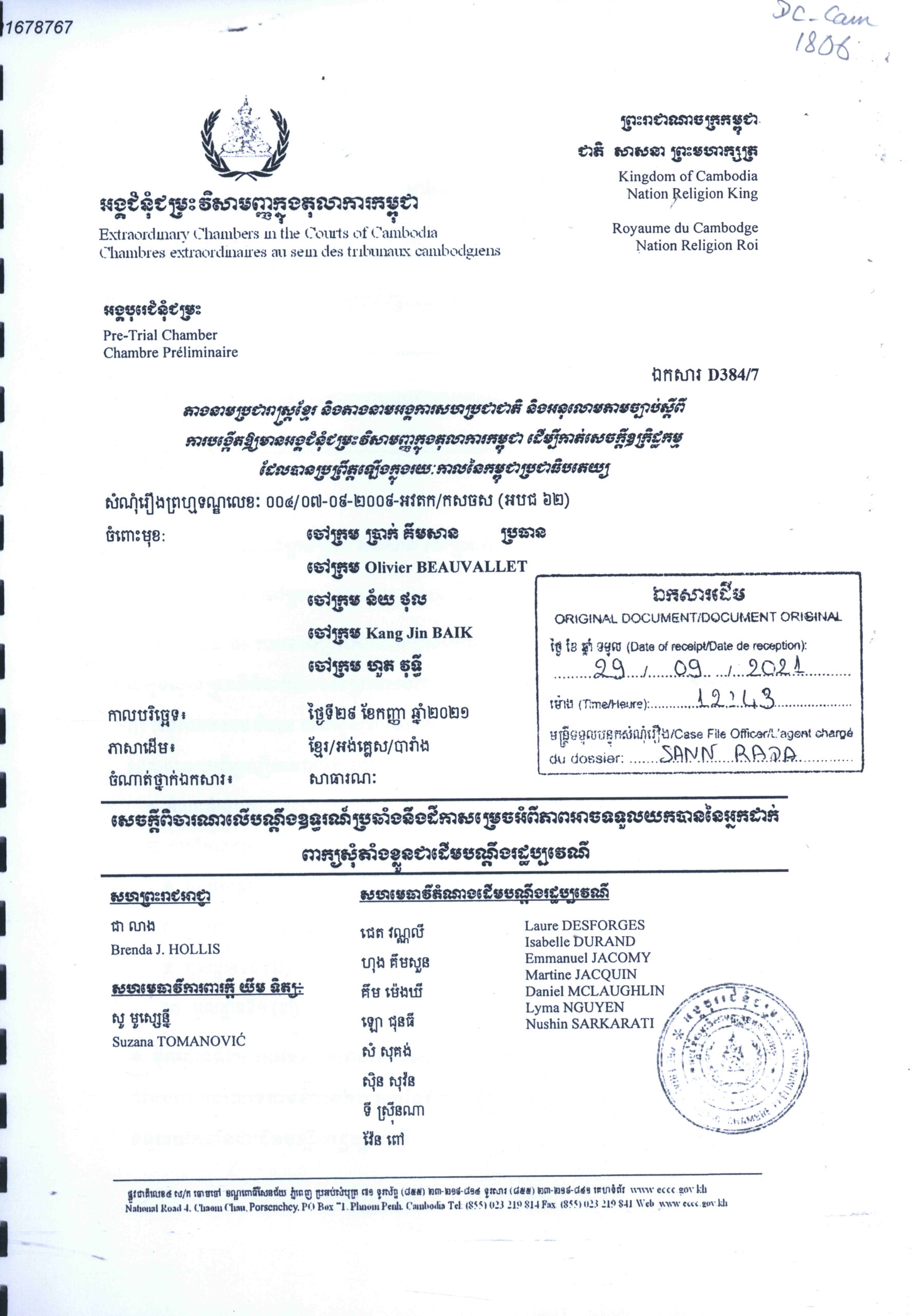 សេចក្តីពិចារណាលើបណ្តឹងឧទ្ទរណ៍ប្រឆាំងនឹងដីកាសម្រេចអំពីភាពអាចទទួលយកបាននៃអ្នកដាក់ពាក្យសុំតាំងខ្លួនជាដើមបណ្តឹងរដ្ឋប្បវេណី