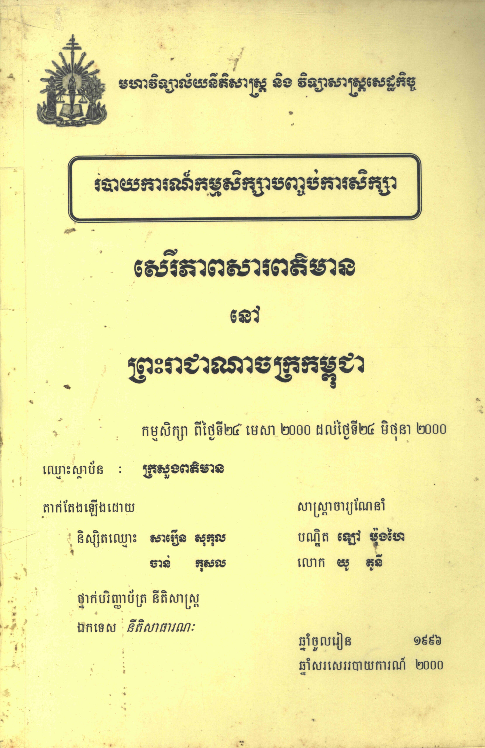 សេរីភាពសារព័ត៌មាននៅព្រះរាជាណាចក្រកម្ពុជាៈ របាយការណ៍កម្មសិក្សាបញ្ចប់ការសិក្សា