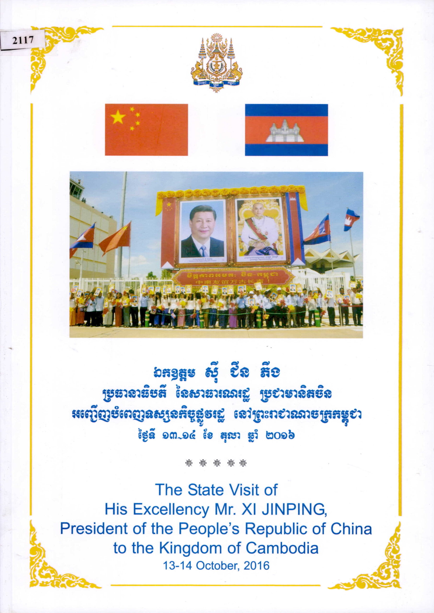 ឯកឧត្តម ស៊ី ជីនភីង ប្រធានាធិបតី នៃសាធារណរដ្ឋប្រជាមានិតចិន អញ្ជើញបំពេញទស្សនកិច្ចផ្លូវការ នៅព្រះរាជាណាចក្រកម្ពុជា ១៣-១៤ ខែតុលា ឆ្នាំ២០១៦ (The State Visit of His Excellency Mr. XI JINPING, President of People’s Republic of China to the Kingdom of Cambodia, 13-14 October 2016)