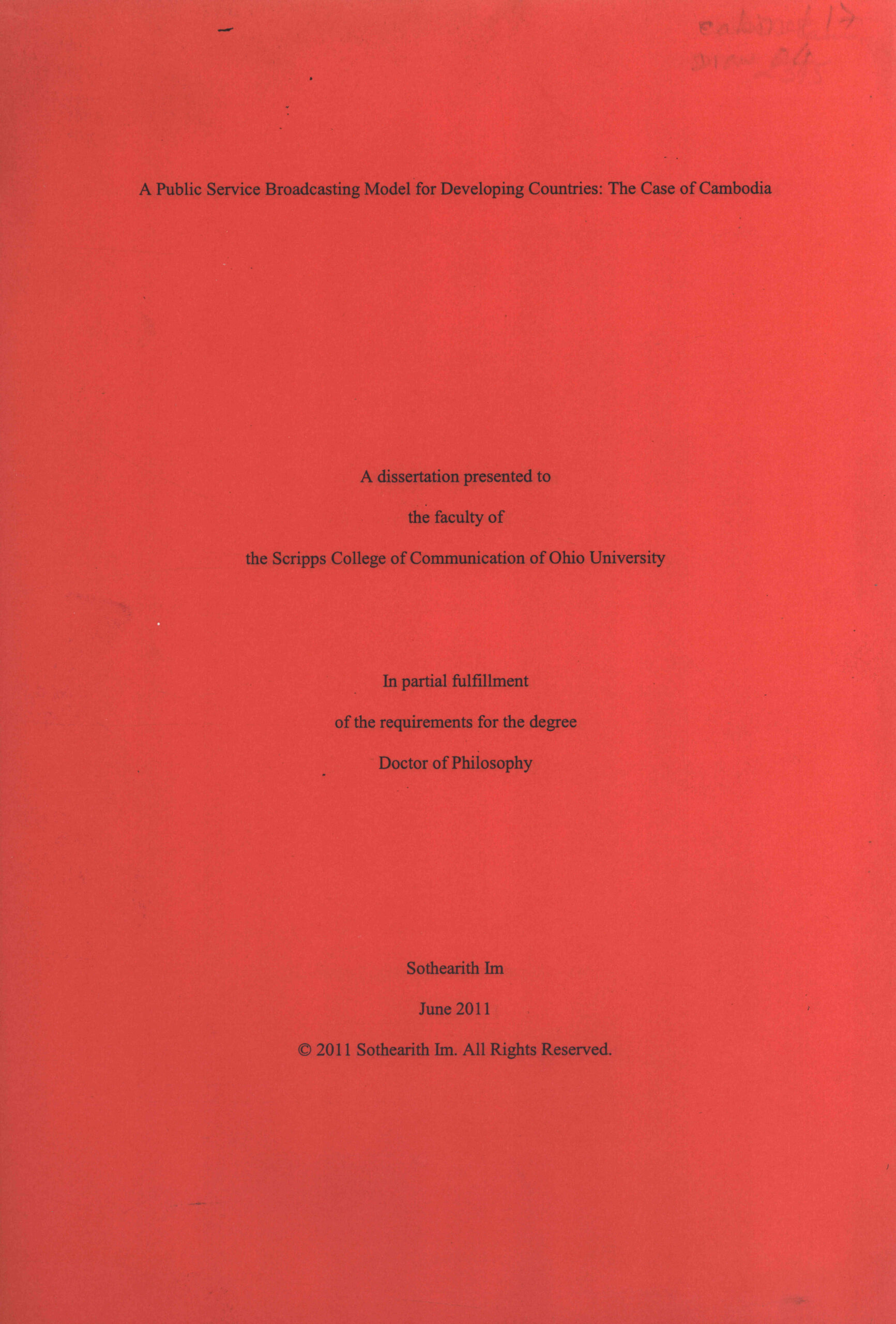 A dissertation: A Public Service Broadcasting Model for Developing Countries: The Case of Cambodia.