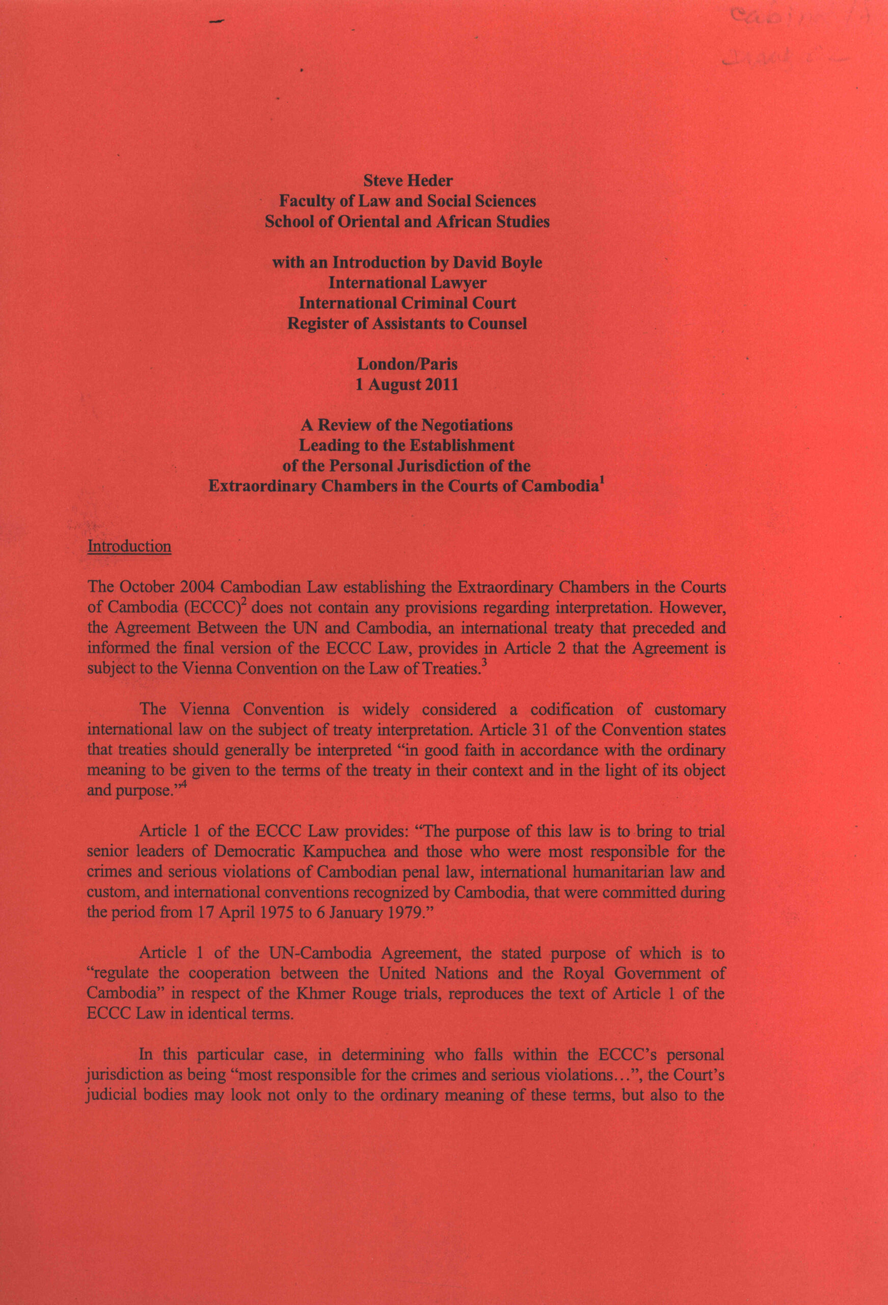 A Review of the Negotiations Leading to the Establishment of the Personal Jurisdiction of the Extraordinary Chambers in the Courts of Cambodia.