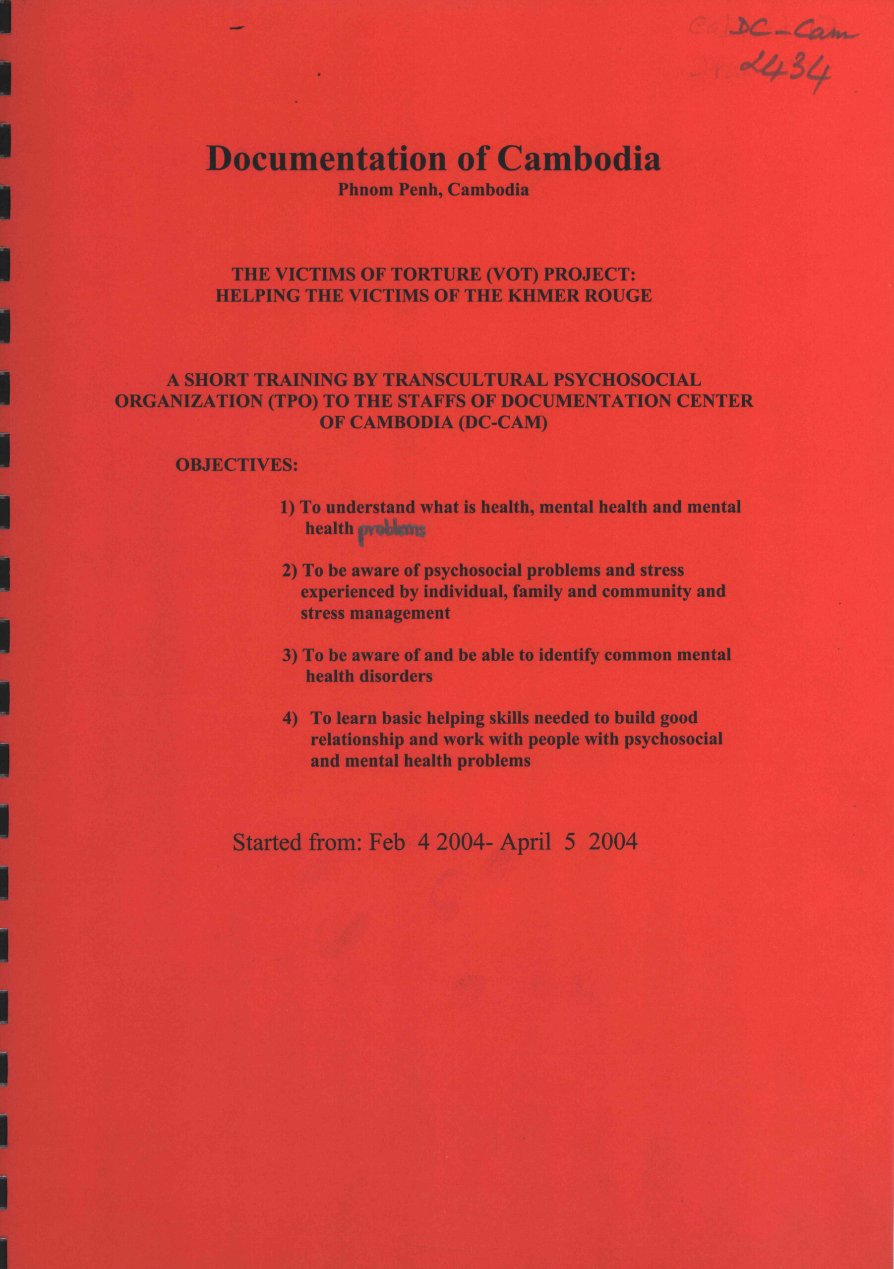 A Short Training by Transcultural Psychosocial Organization (TPO) to the Staff of DC-Cam.
