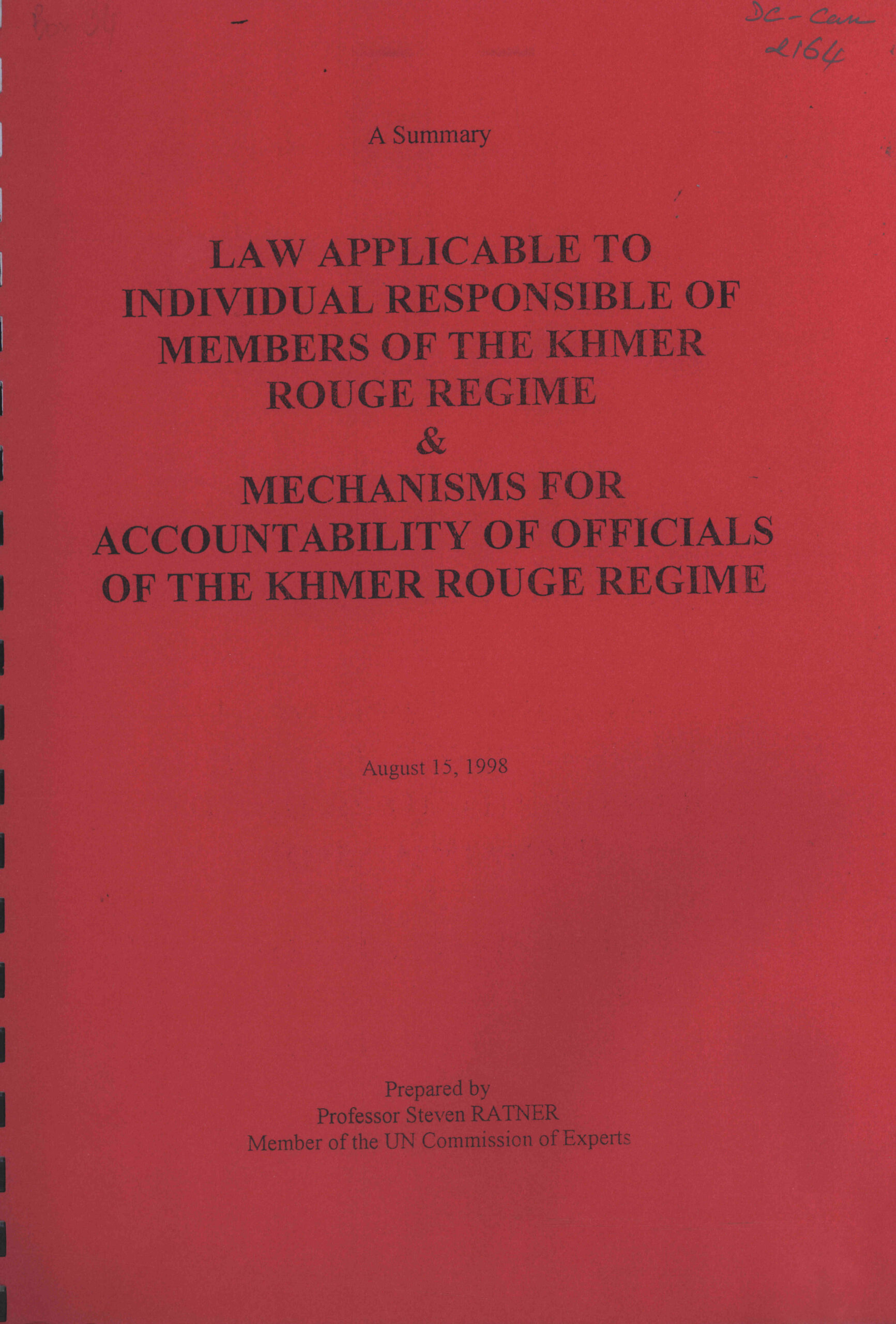 A Summary: Law and Applicable to individual Responsible of Members of the Khmer Rouge Regime & Mechanisms for Accountability of Officials of the Khmer Rouge Regime.