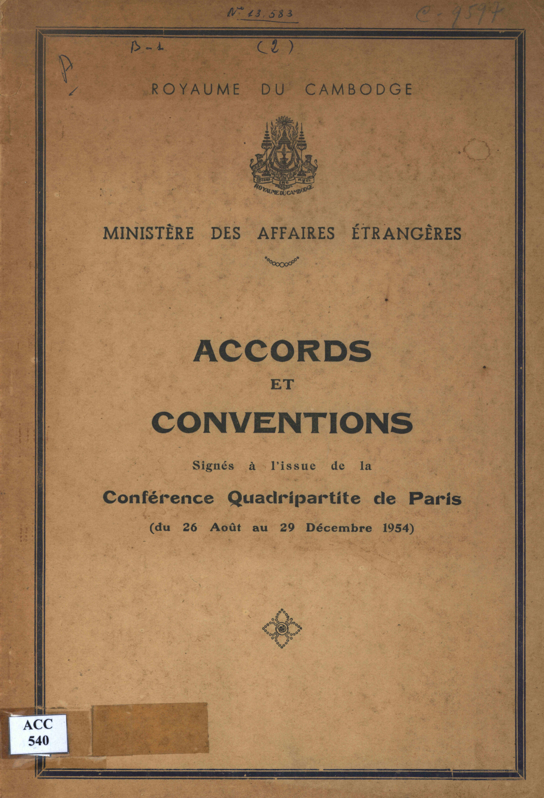 Accords et Conventions: signés a l’issue de la Conférence quadripartite de Paris (du 26 Aout au 29 Decembre 1954).