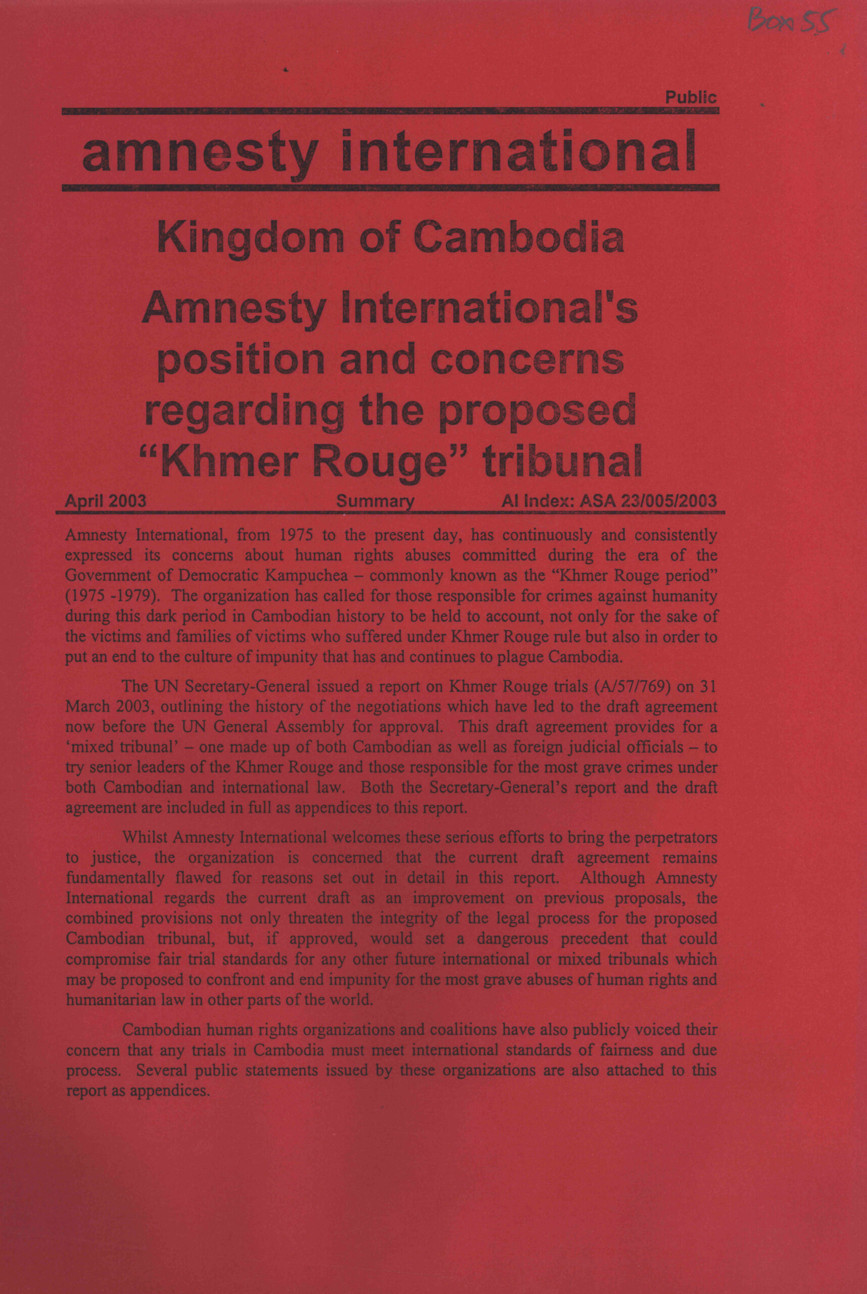 Amnesty international: Summarizes Report.