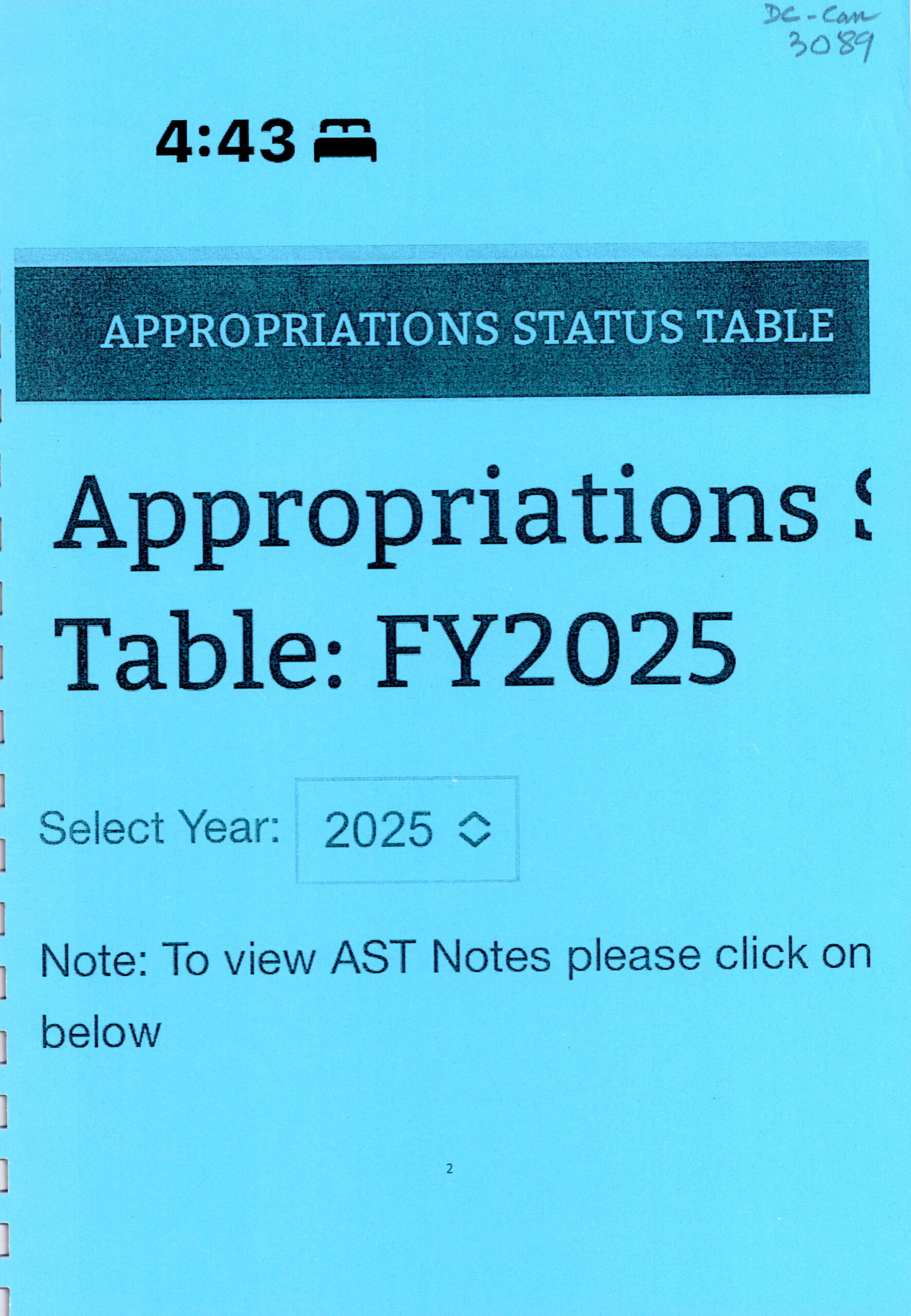 Appropriations Status Table: Appropriations Table: FY 2025.
