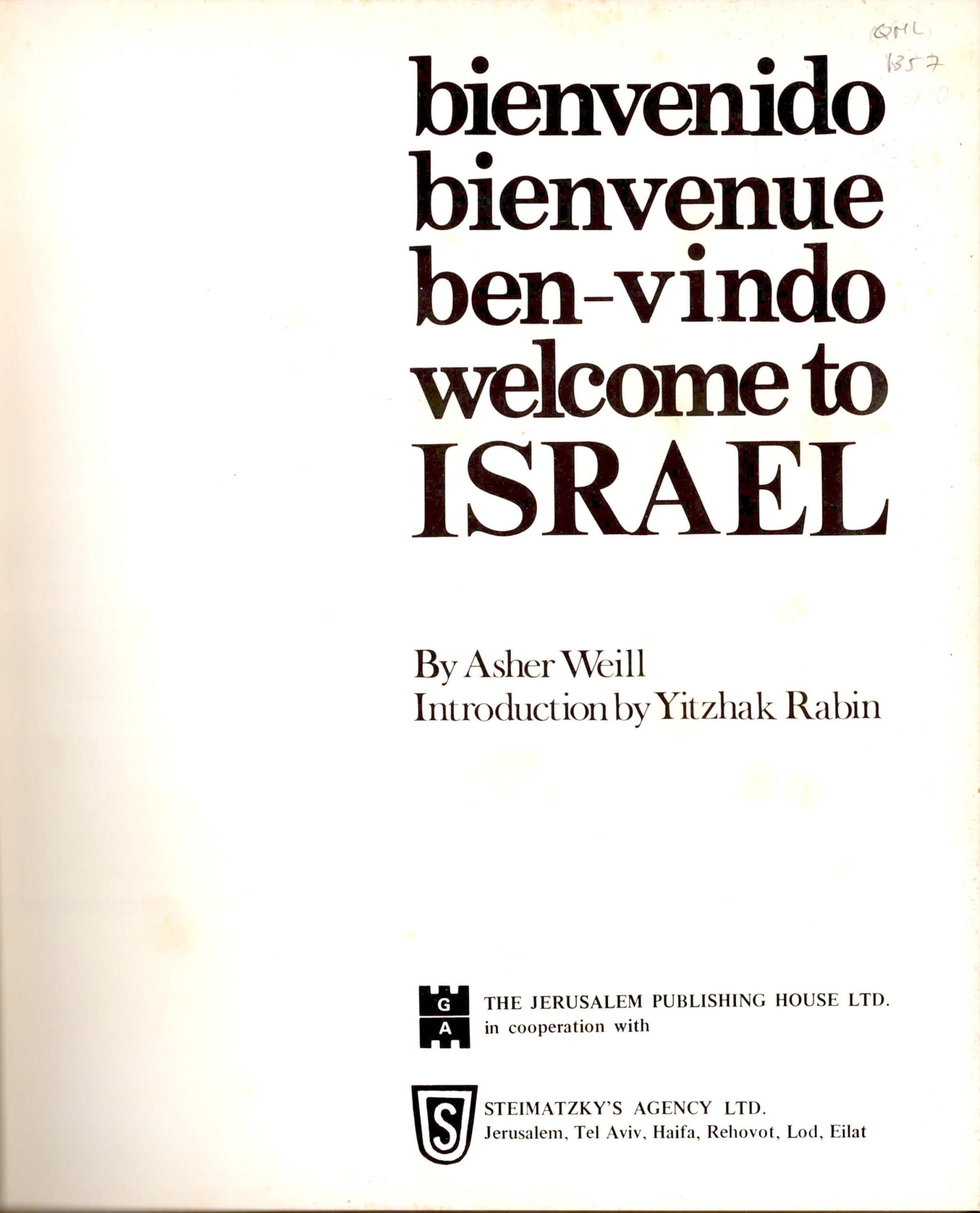 Bienvenido, Bienvenue, Ben-Vindo Welcome to Israel.
