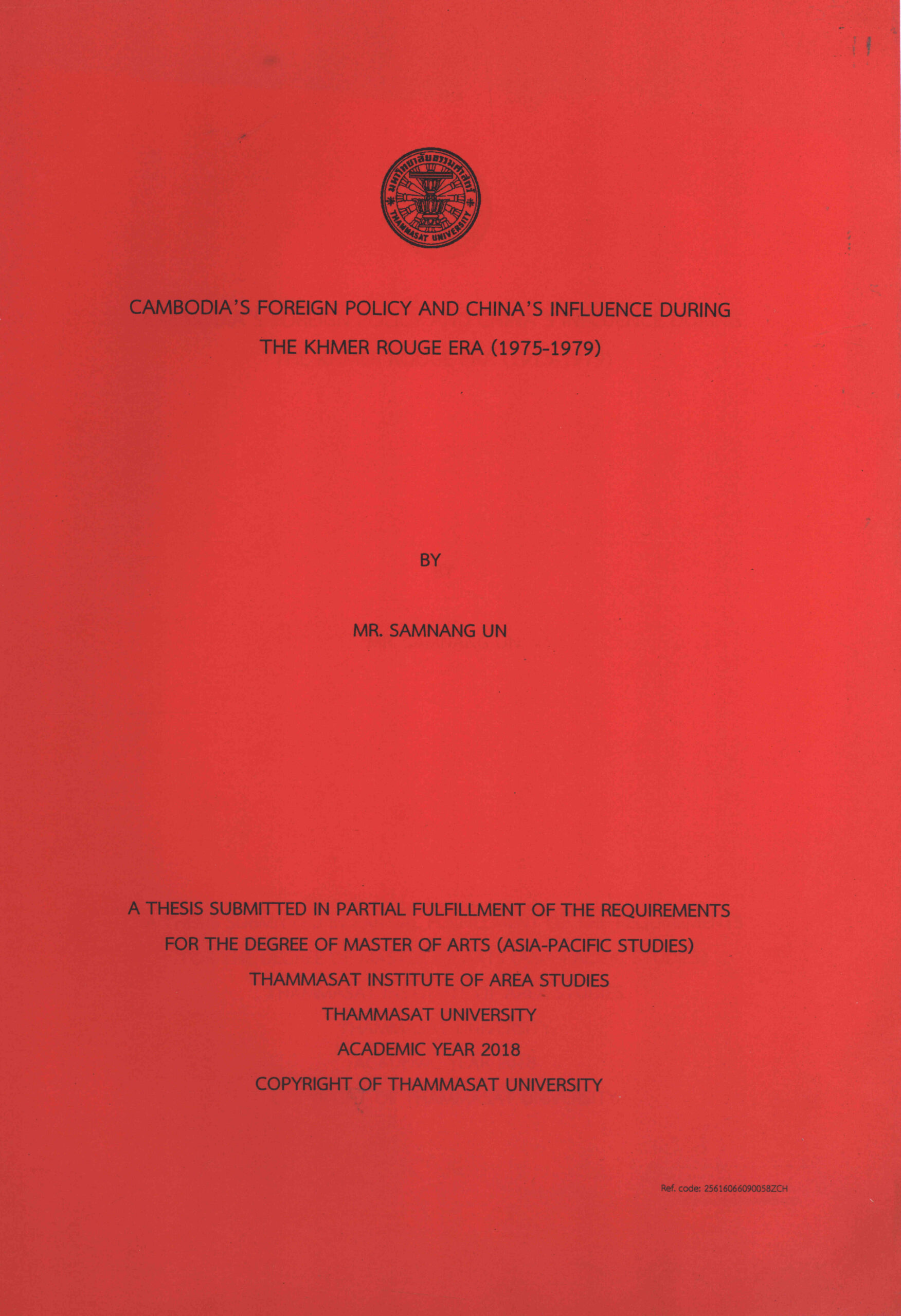 Cambodia’s Foreign Policy and China’s Influence during the Khmer Rouge Era (1975-1979): A thesis submitted in Partial Fulfillment of the Requirements for the Degree of Master of Arts (Asian Pacific Study).