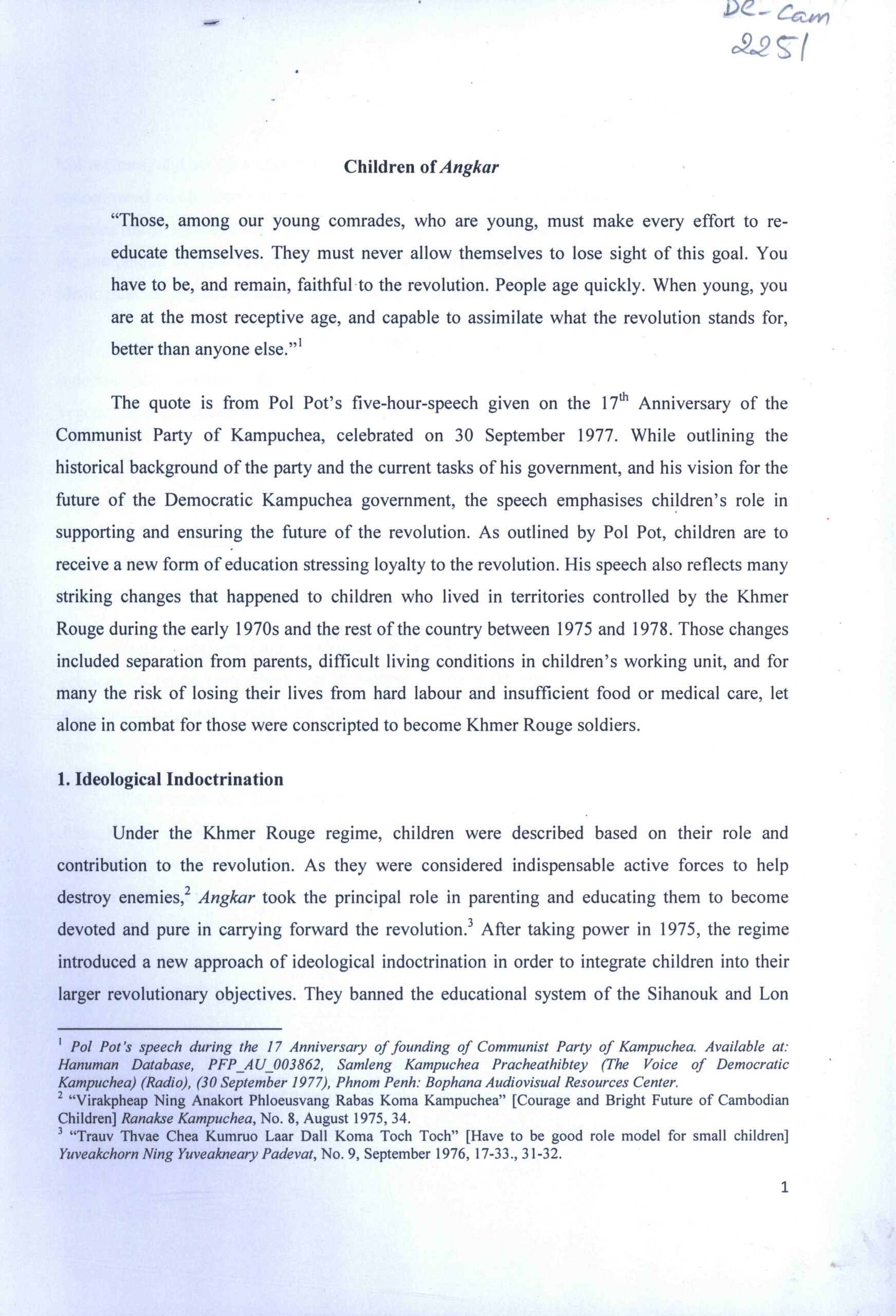 Children of Angkar/ Ethnic Minorities under the Khmer Rouge/ Marriages under the Khmer Rouge.