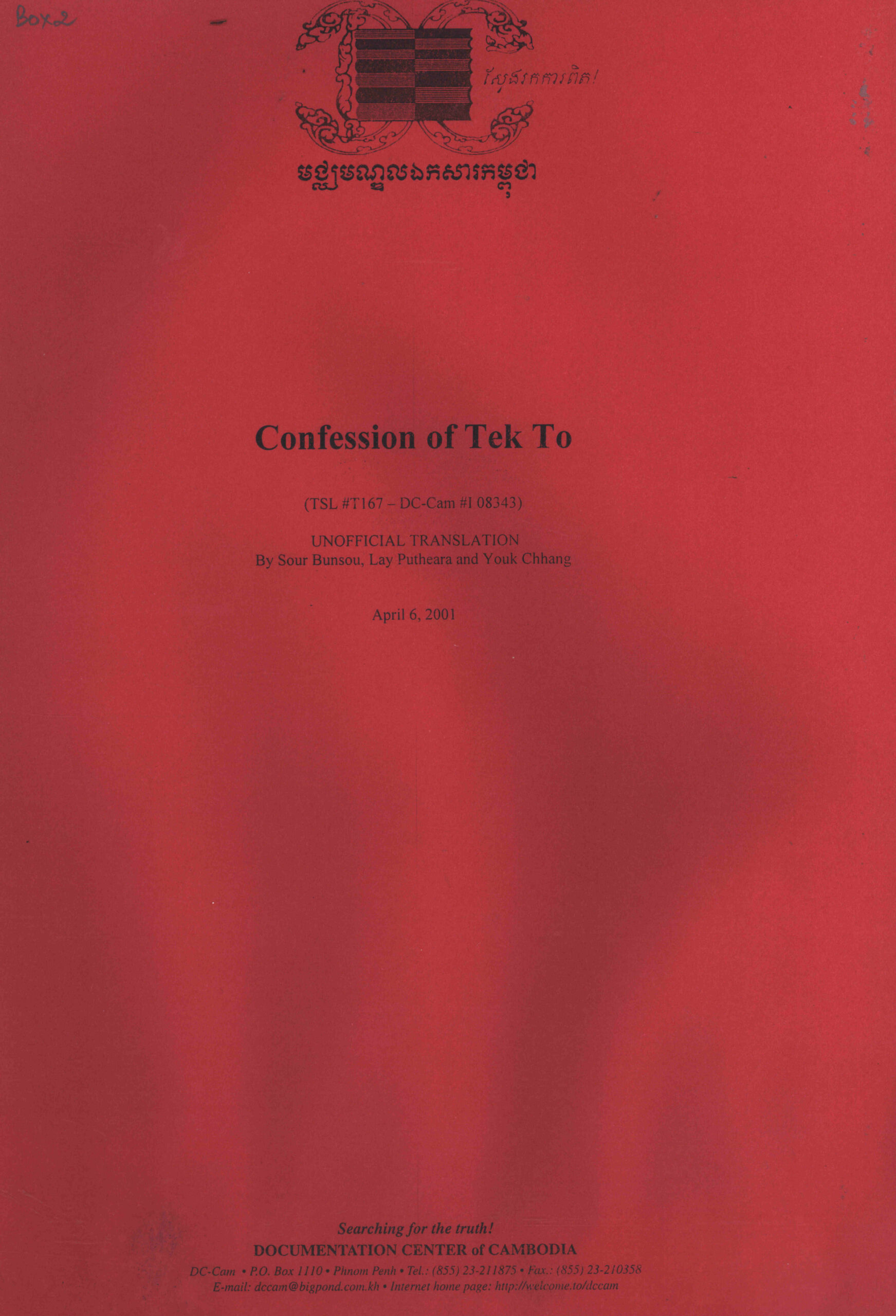 Confession of Tek To (TSL #T167–DC-Cam #08343): Unofficial translation.