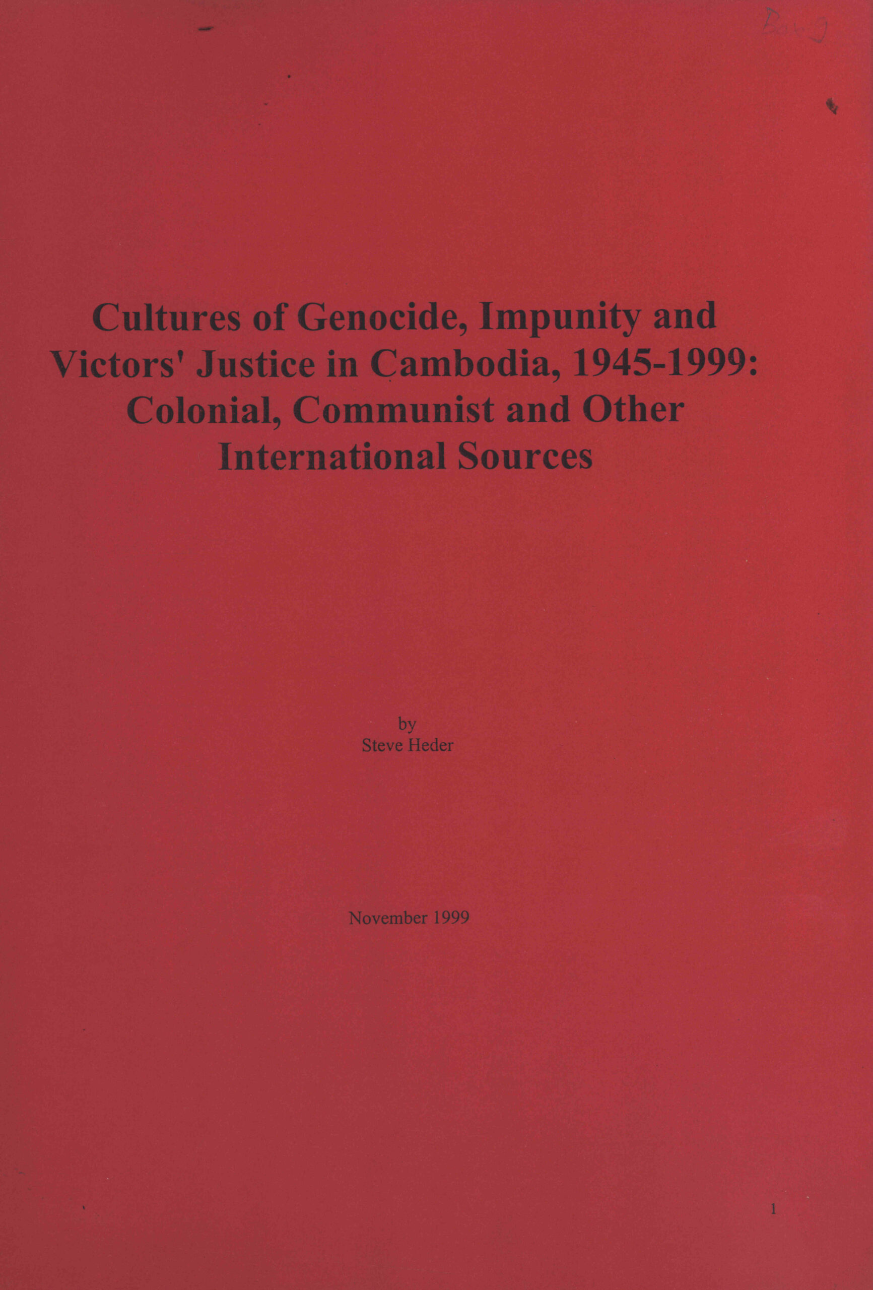 Cultures of Genocide, Impunity and Victors’ Justice in Cambodia, 1945-1999: Colonial, Communist and other International Sources.