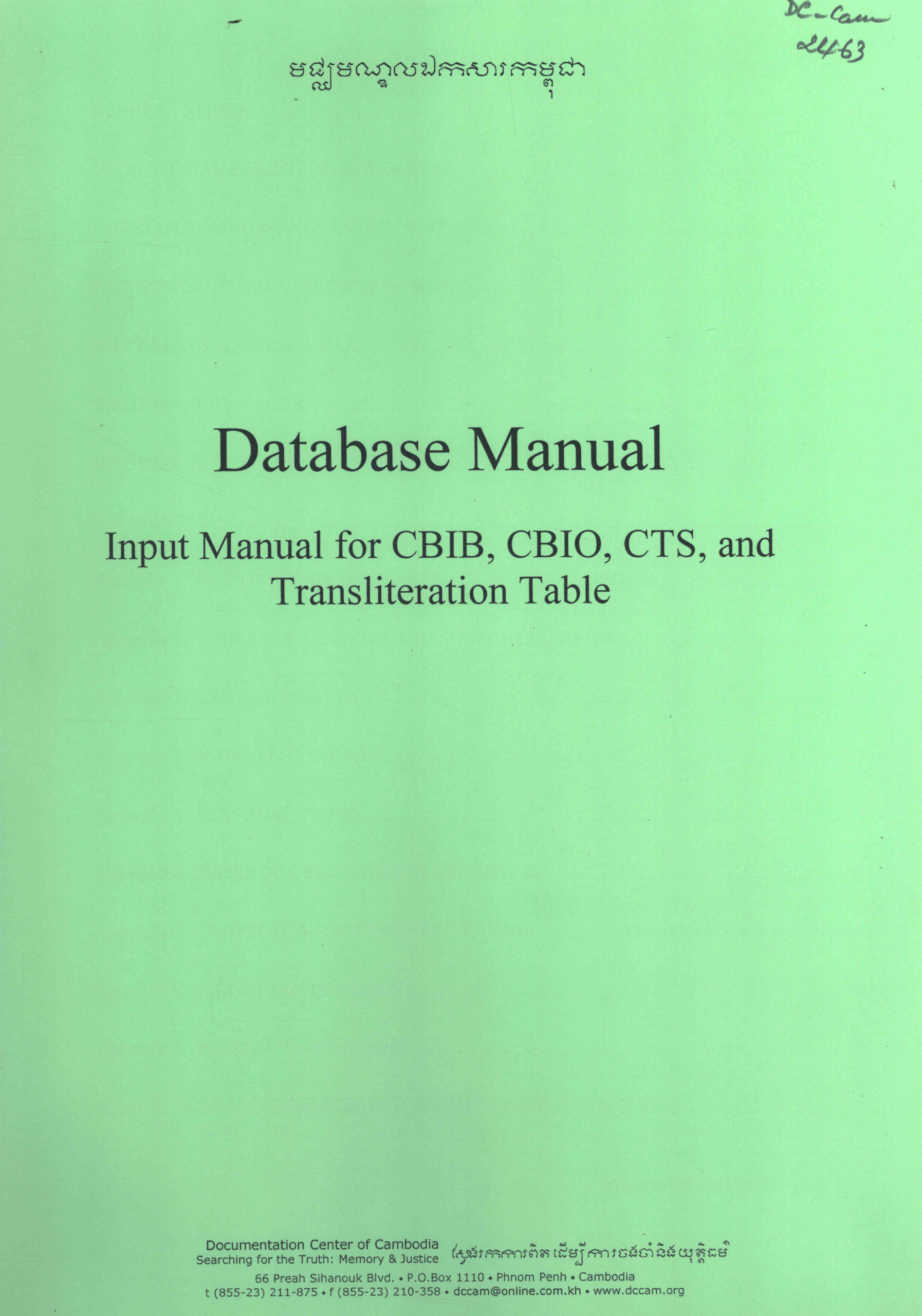 Database Manual: Input Manual for CBIB, CBIO, CTS, and Transtiteration Table.