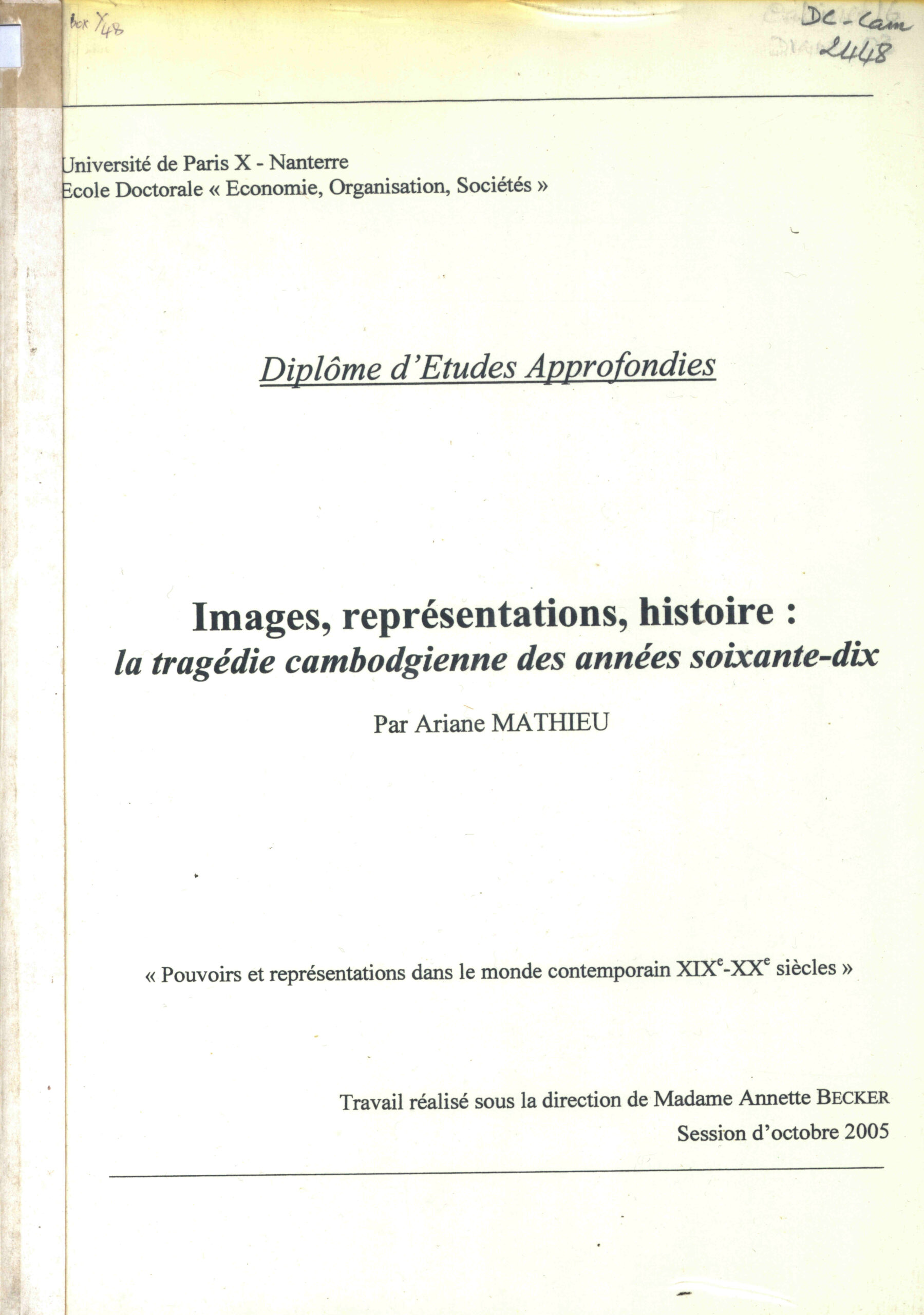Diplome d’Etudes Approfondies: Images, representation, histoire: la tragedie cambodgienne des annees soixante-dix.