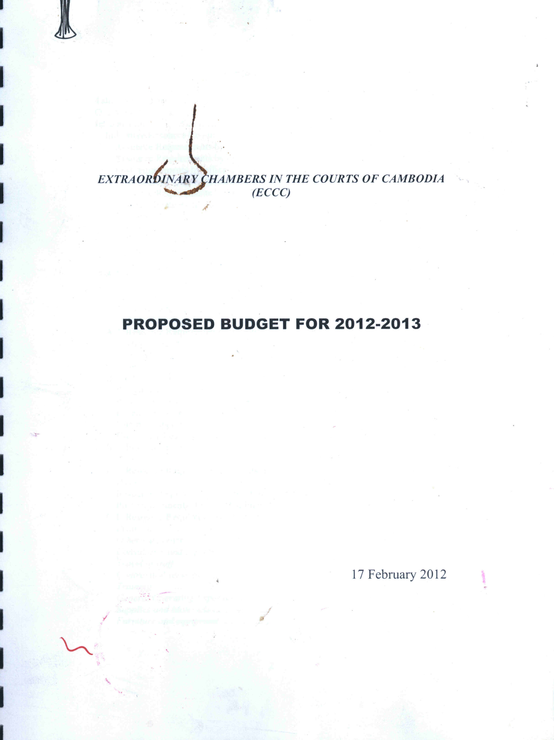 Extraordinary Chambers in the Courts of Cambodia (ECCC): Proposed Budget for 2012-2013.