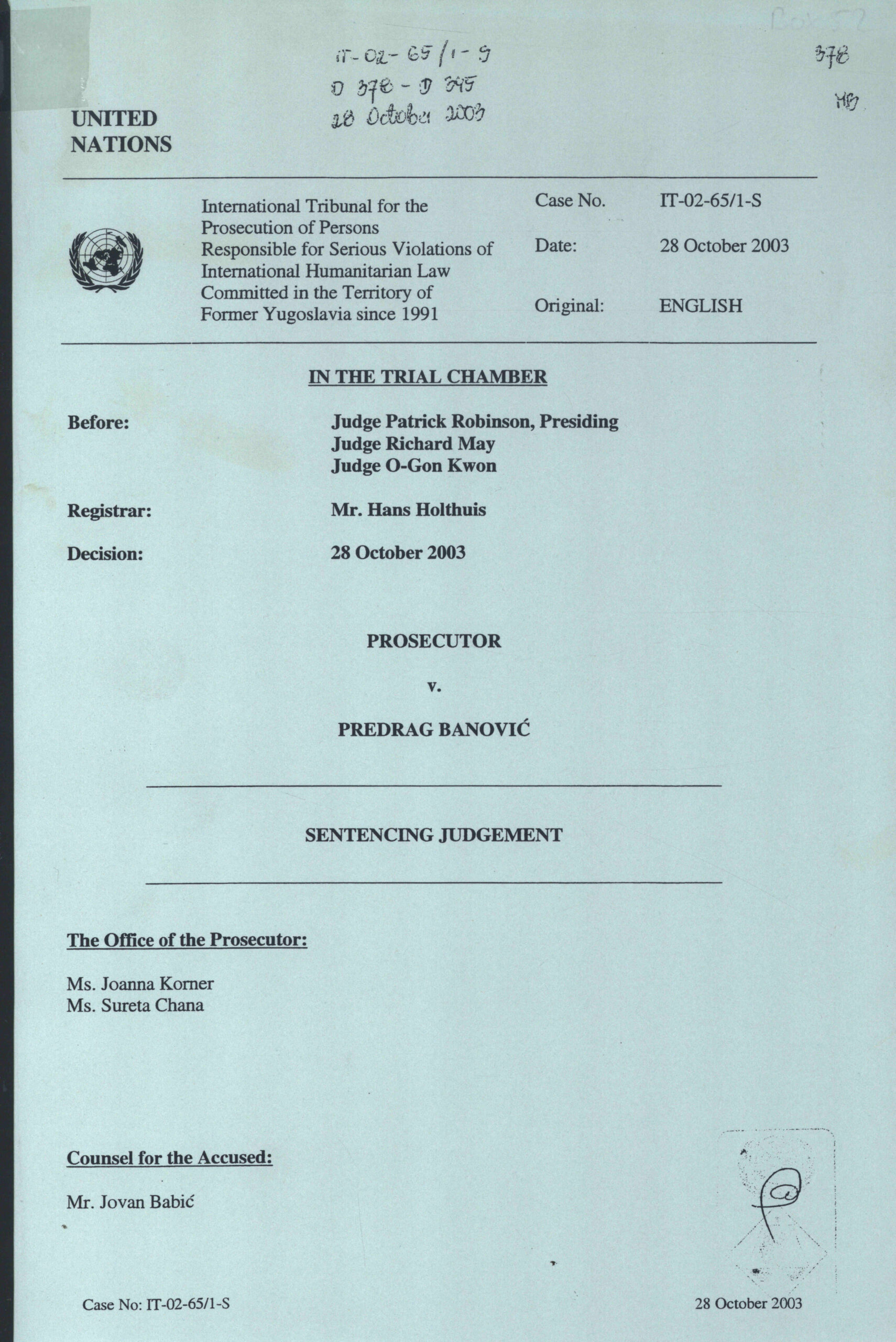 In Trial Chamber: Prosecutor V. Predrag Banovic.