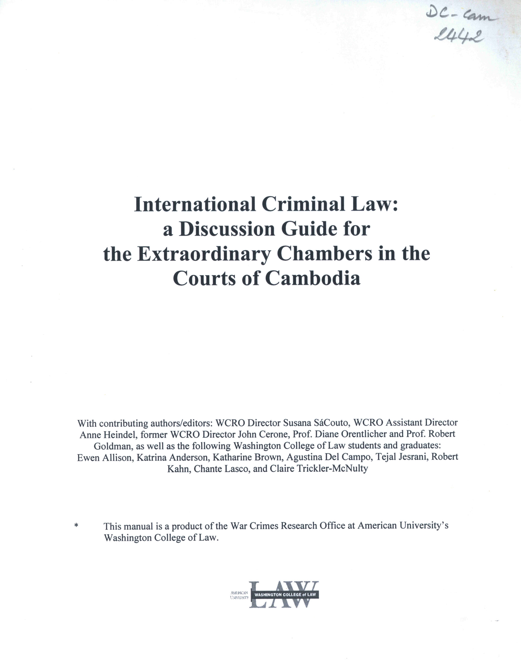 International Criminal Law: a discussion guide for the Extraordinary Chamber in the Courts of Cambodia.