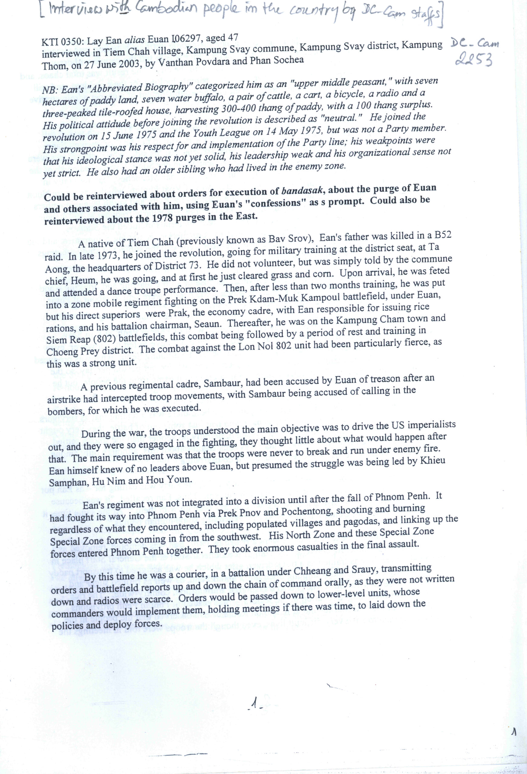 [Interview with Cambodian people in the country by DC-Cam Staffs (Interviewer: Lay Ean alia Euan)] Two books.