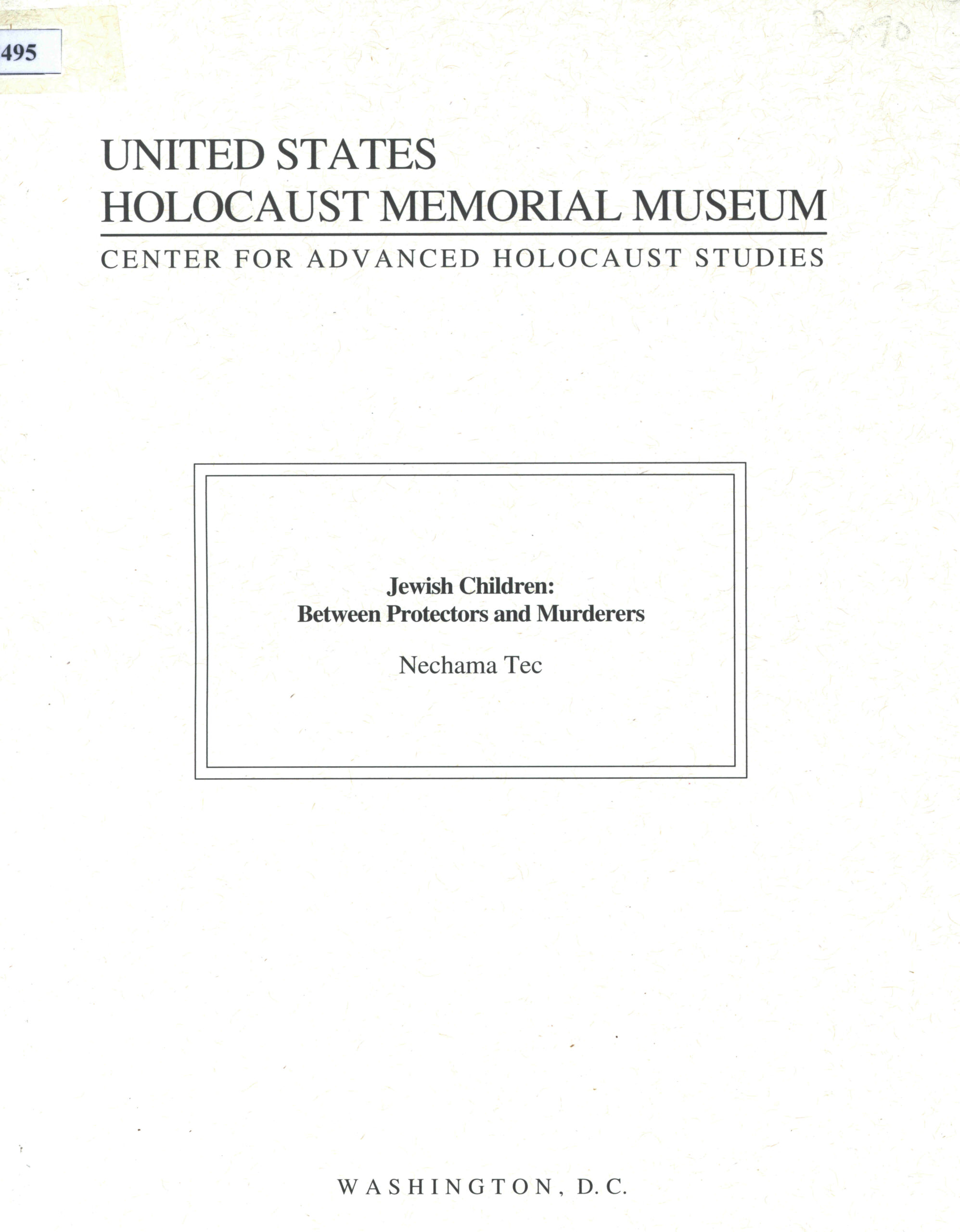 Jewich Children: Between Protectors and Murderers: United States Holocaust Memorial Museum.