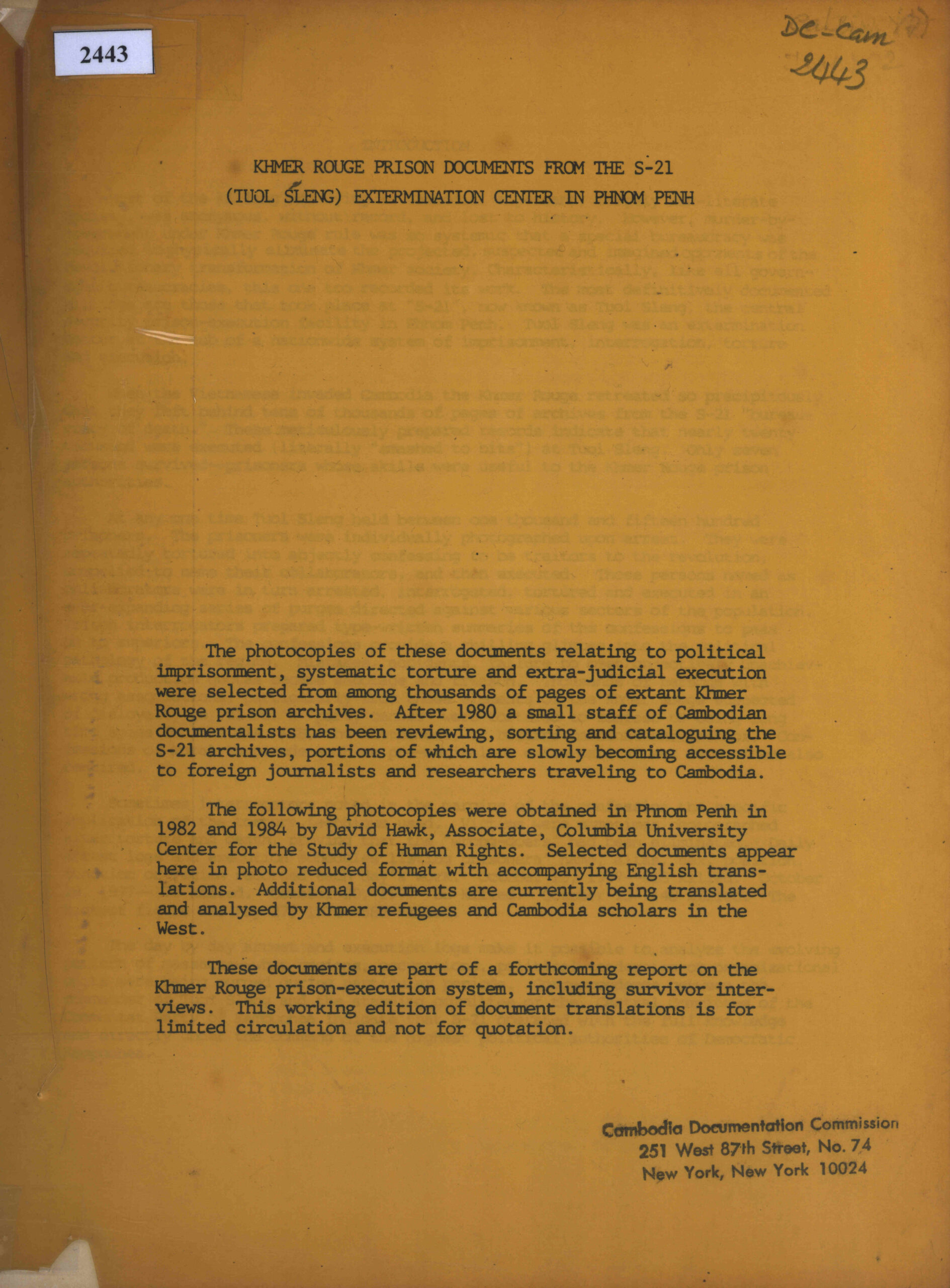 Khmer Rouge Prison Documents from S-21 (Tuol Sleng) Extermination Center in Phnom Penh.