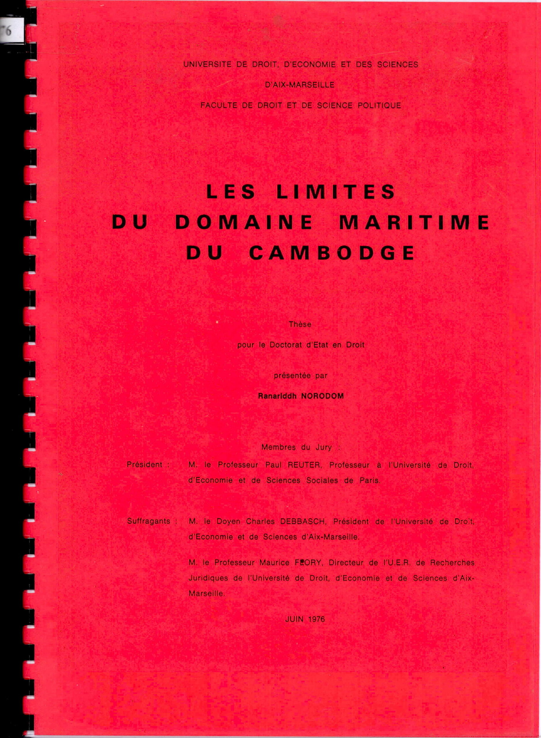 Les Limites du Domaine Maritime du Cambodge: These pour le Doctorat d’Etat en Droit presentee par Ranaridhh NORODOM, JUIN 1976.
