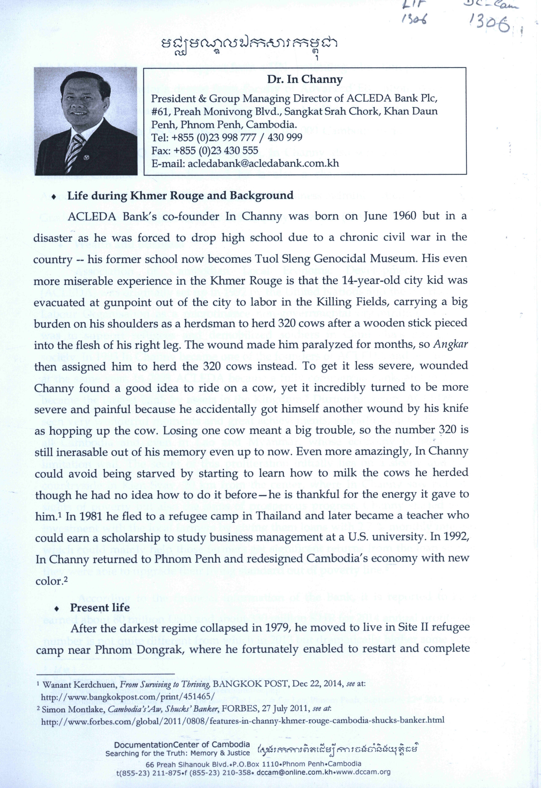 [Life during Khmer Rouge and background of Oknha or Businessman in Cambodia.