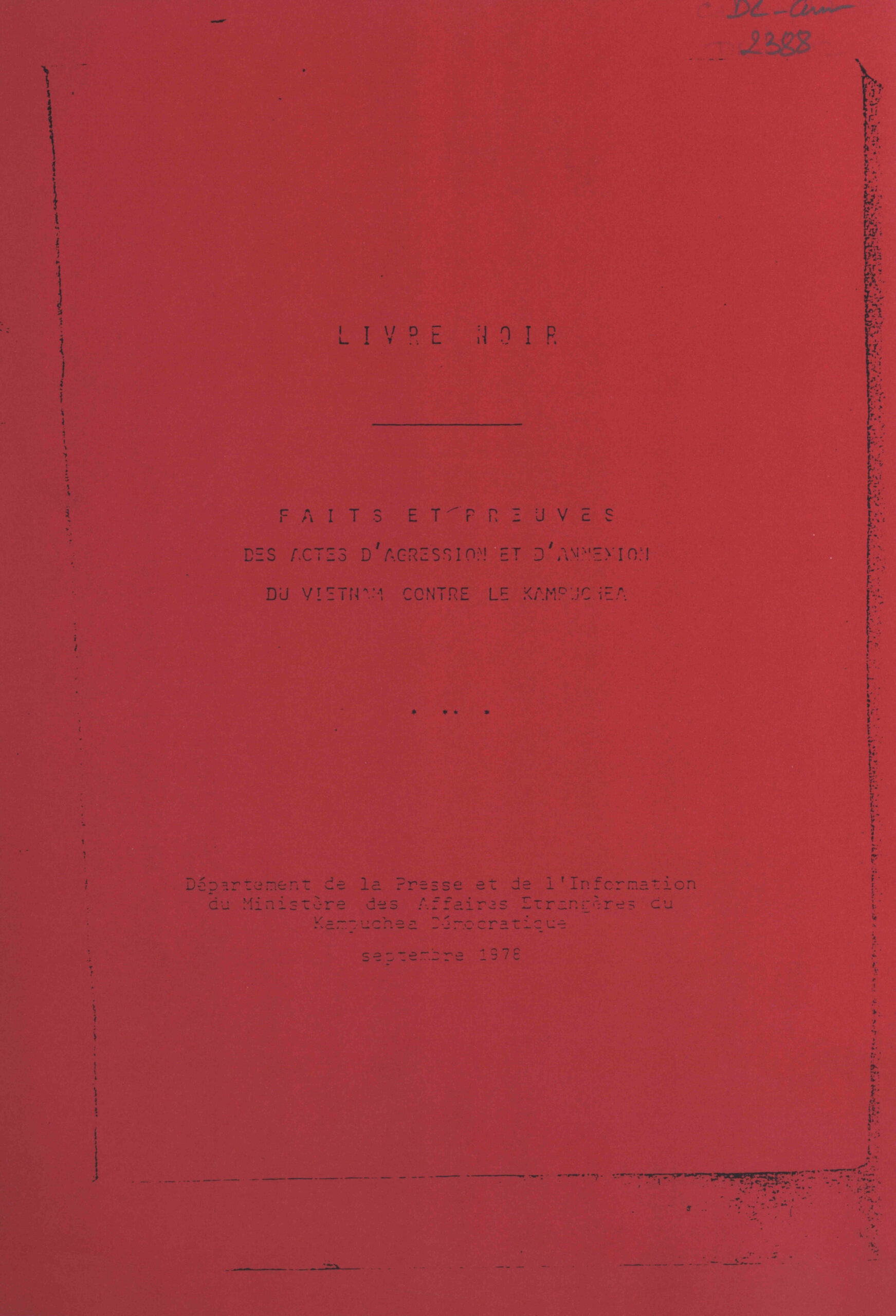 Livre Noir: Faits et Preuves des actes d’agression et d’annexion du Vietnam Contre le Kampuchea.