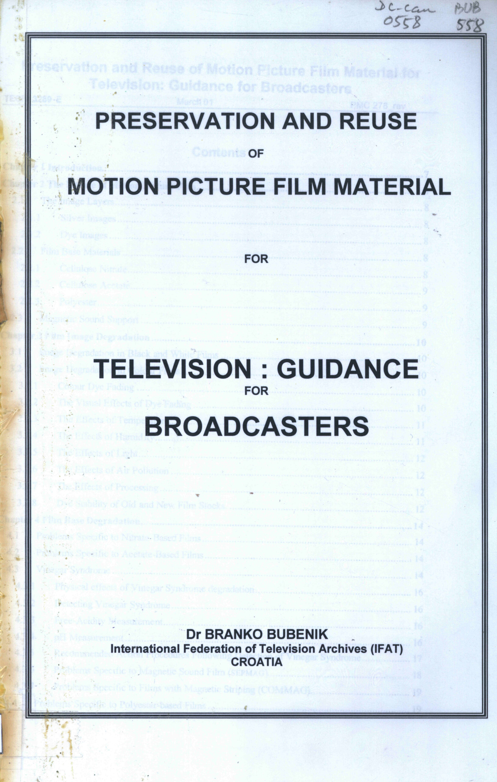 Preservation and Reuse of Motion Picture film material for television: guidance for broadcasters.