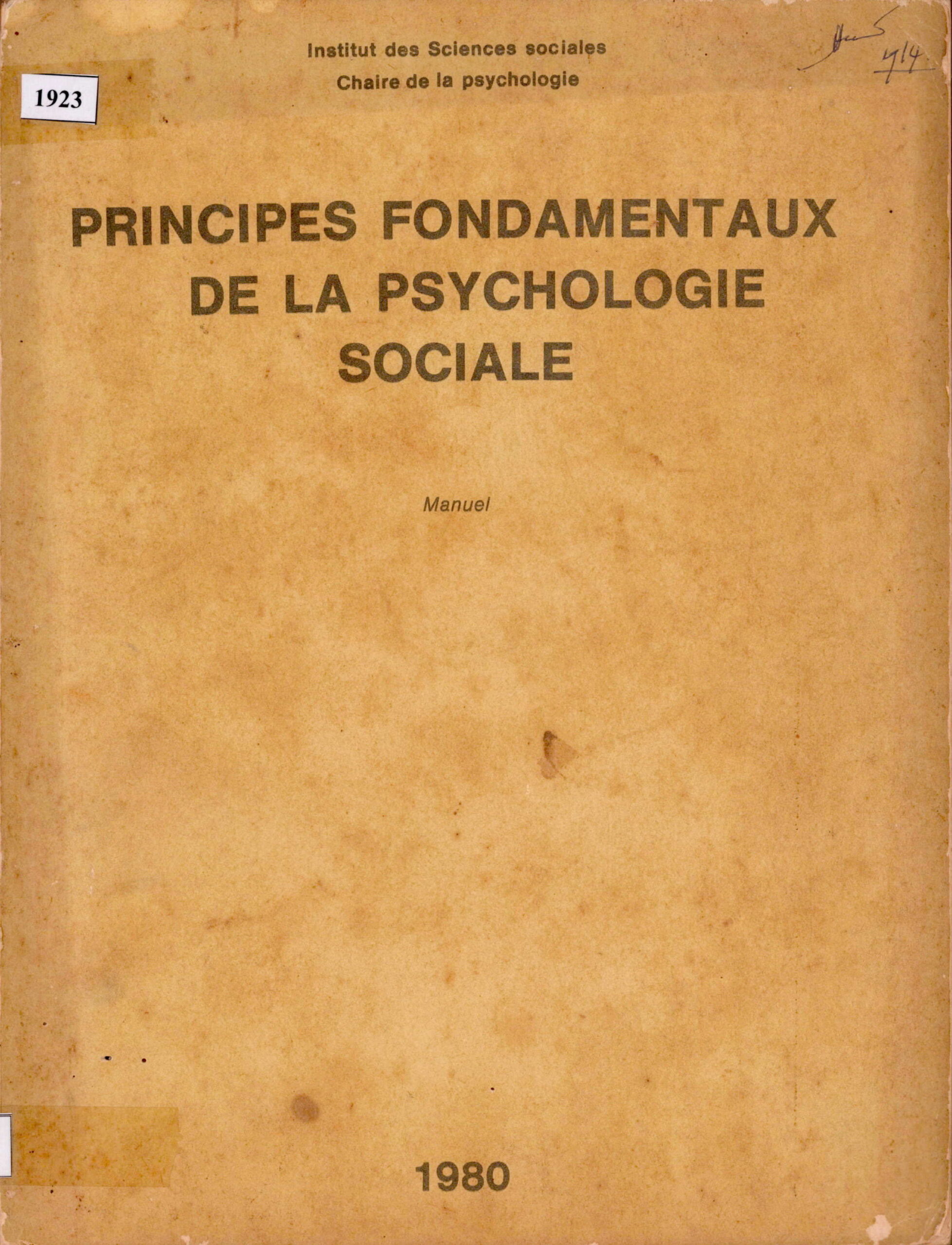 Principes Fondamentaux De La Psychologie Sociale.