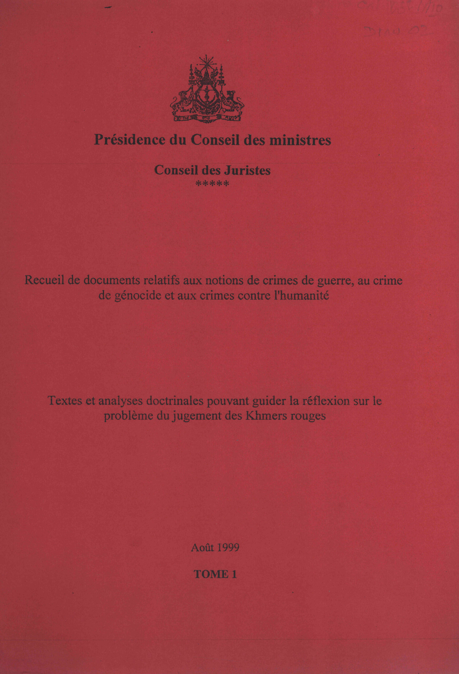 Recueil de documents relatifs aux notions de crimes de guerre, au crimes de genocide et aux crimes contre l’humanite.: Text et analyses doctrinales pouvant guider la reflexion sur le probleme du jugement des Khmer Rouges. Tome I