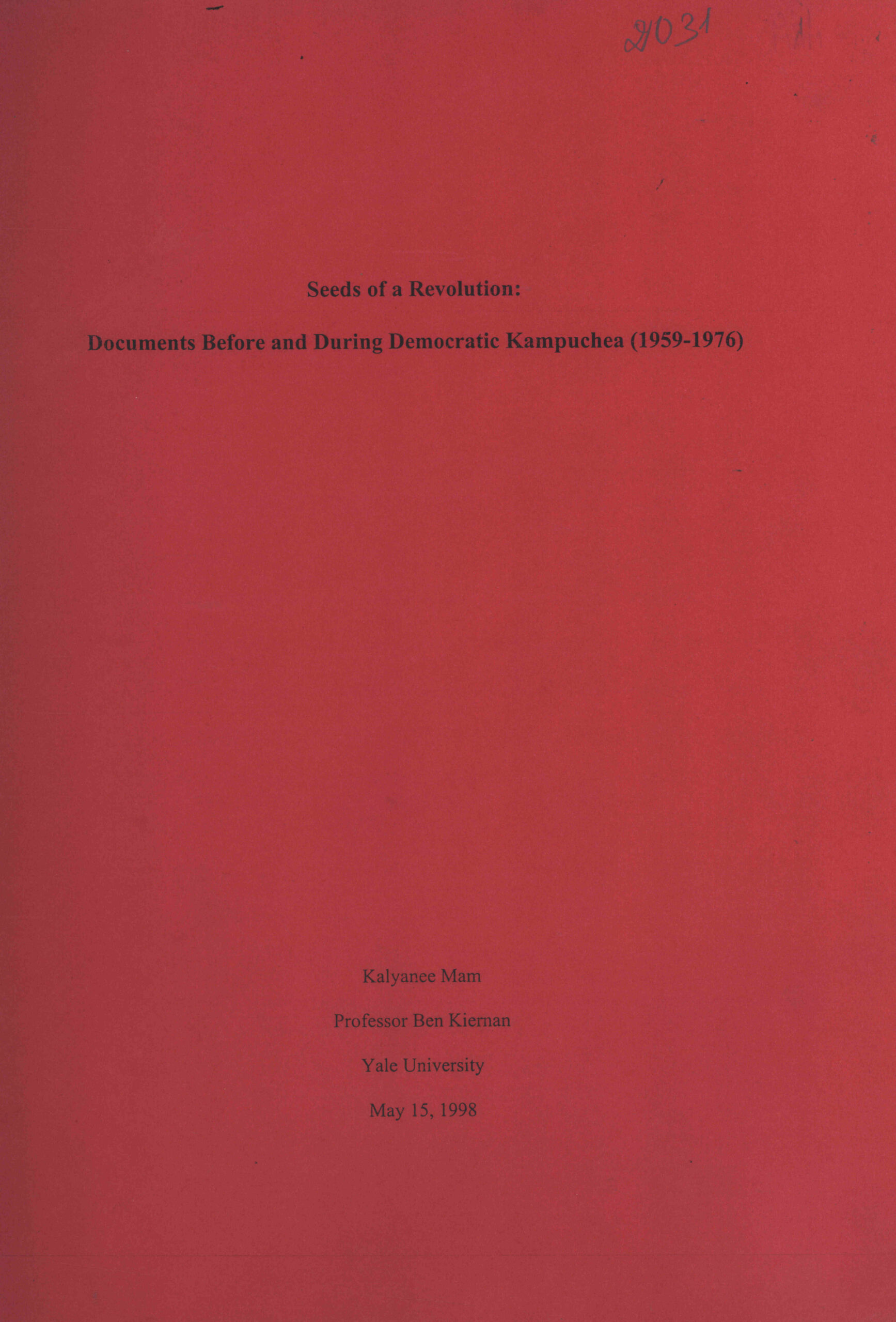 Seeds of a revolution: Documents before and during Democratic Kampuchea (1959-1976).
