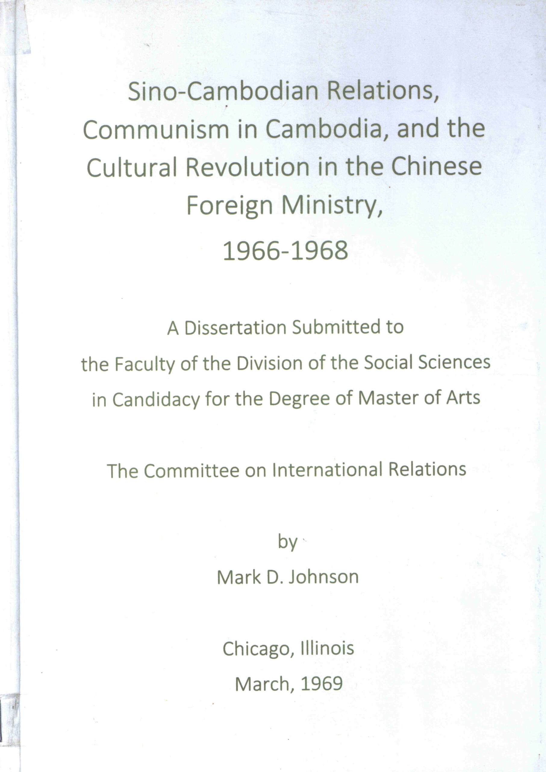 Sino-Cambodian Relations, Communism in Cambodia, and the Cultural Revolution in the Chinese Foreign Ministry, 1966-1968: A Dissertation Submitted to the Faculty of the Division of the Social Sciemces in Camdidacy for the Degree of Master of Arts.