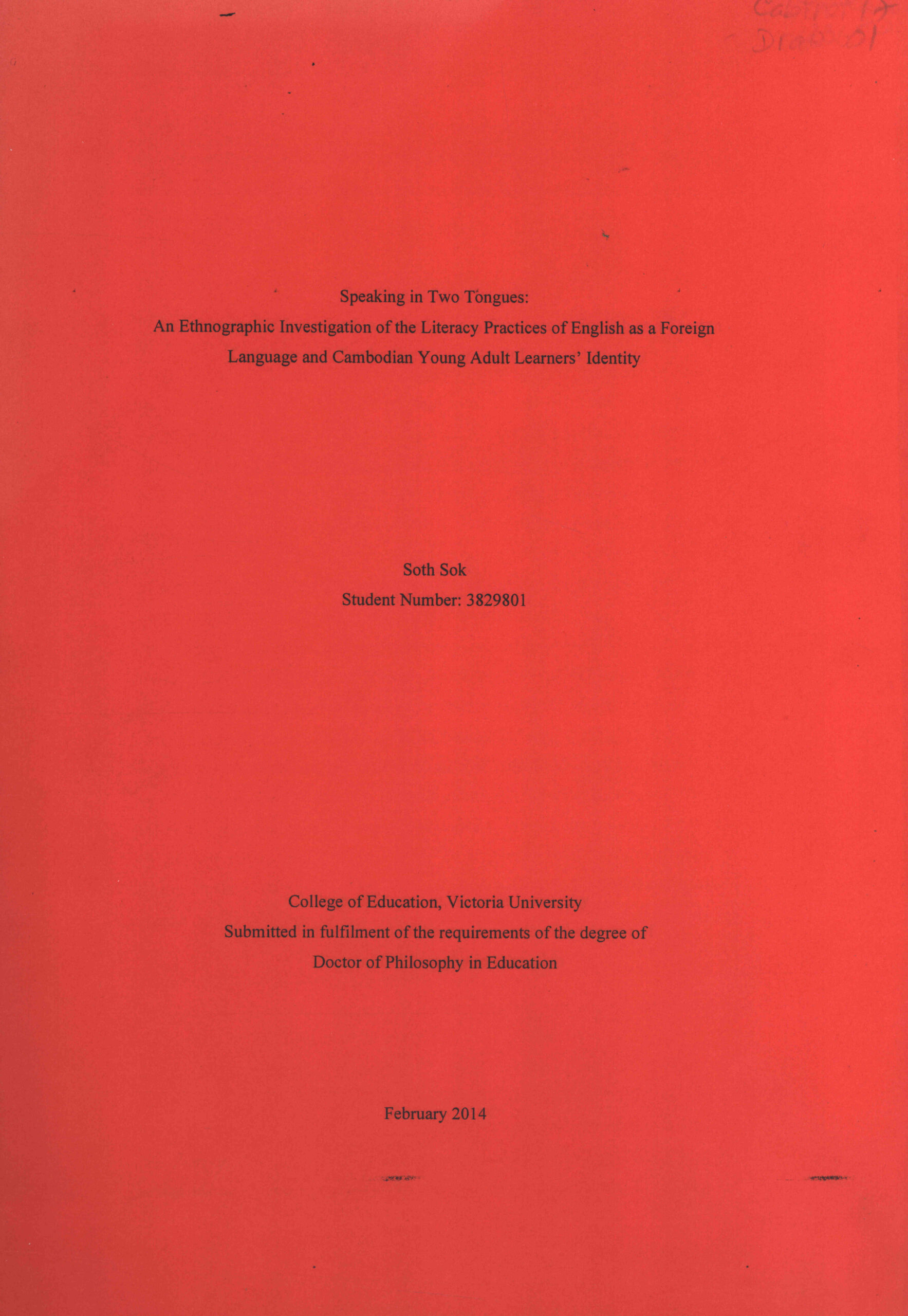 Speaking in two Tongues: An Ethnographic Investigation of the Literacy Practices of English as a Foreign Language and Cambodian Young Adult Learners’ Identity.